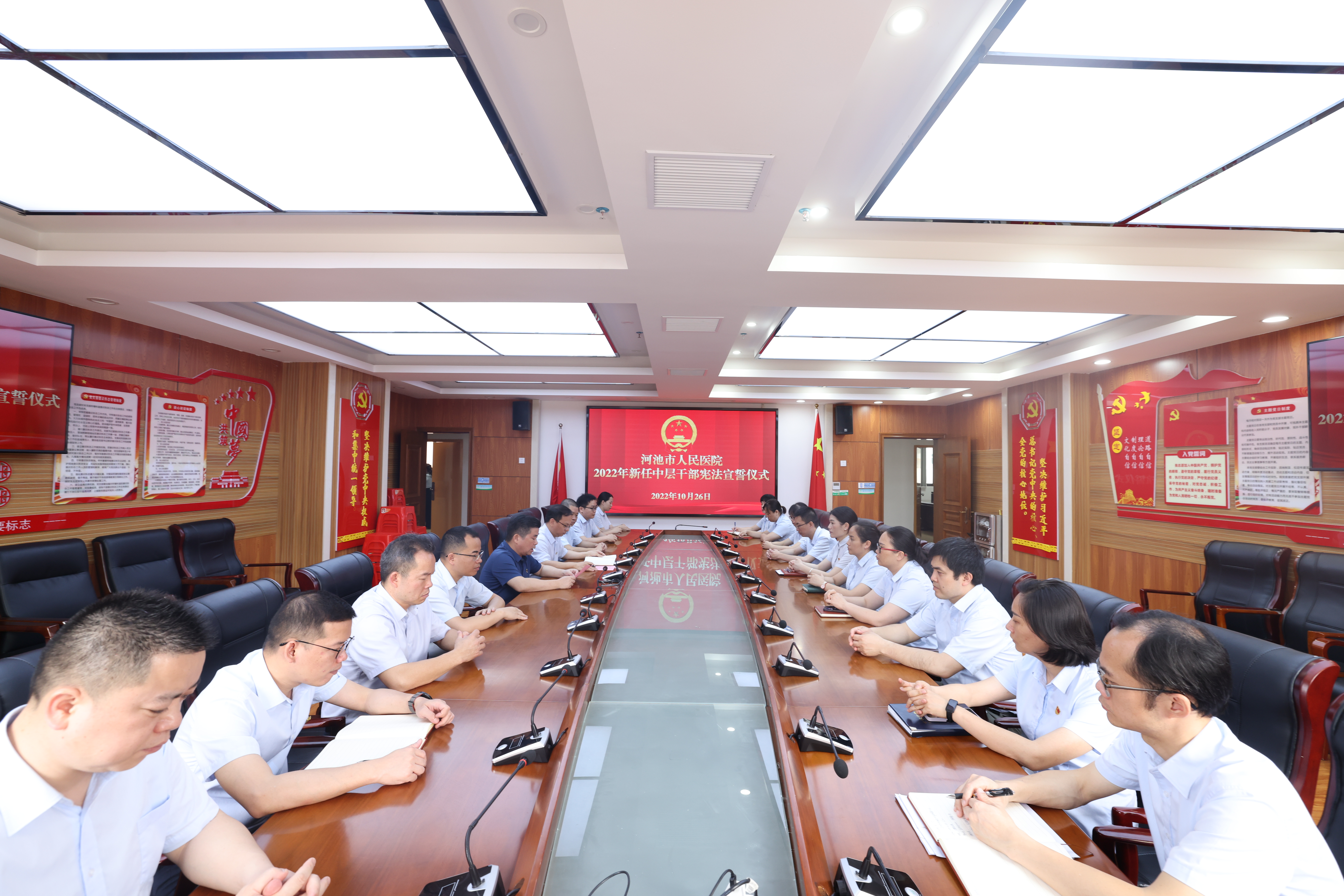 为进一步弘扬宪法精神、维护宪法权威,切实增强新任中层干部的使命感、责任感和荣誉感,10月26日上午,河池市人民医院举行2022年度新任中层干部宪法宣誓仪式,医院党委书记韦义甜出席仪式并讲话,仪式由副院长余乐周主持。
