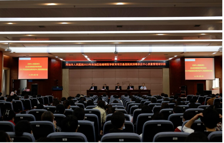 为进一步提升消毒供应中心规范化建设,加强环节质量管理及过程控制,保障医疗安全,10月29日-30日,由河池市人民医院举办的自治区级继续医学教育项目——“基层医院消毒供应中心质量管理培训班”在门诊综合楼23楼多功能厅召开。会议采用线上线下相结合的方式进行授课,来自区内各级医院消毒供应室、手术室的医护人员等共享学术盛宴。会议由河池市人民医院护理部主任欧雪群主持。