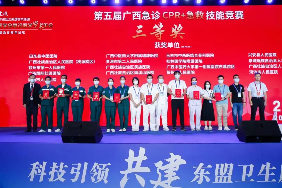 9月23日,第五届广西急诊CPR+急救技能竞赛在南宁举行,河池市人民医院选派急诊科陆助、胡敏和韦莹三名业务骨干参赛,他们一路过关斩将,激烈角逐,凭借出色的表现,喜获三等奖的佳绩。