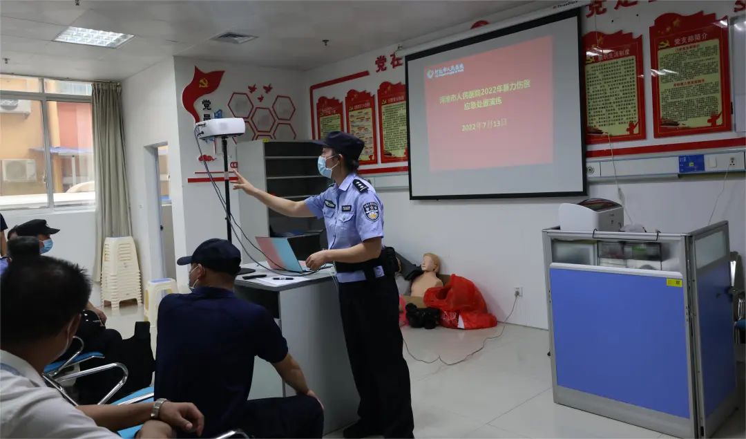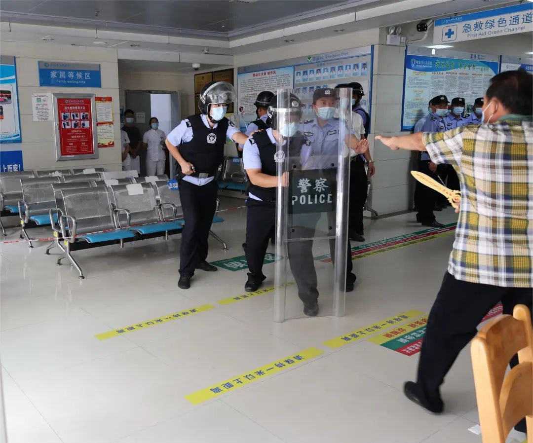 为进一步维护医院医疗安全,营造和谐就医环境,增强医院员工防卫意识,7月13日,河池市人民医院联合金城江区公安分局南桥派出所开展防暴力伤医应急处置演练。