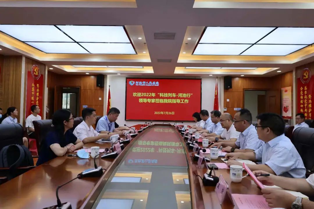 7月26-27日,“科技列车河池行”走进河池市人民医院。国家卫生健康委科教司副司长黄龙坚在河池市人民政府副市长曹崇俊、自治区卫生健康委科教处处长王盛等领导陪同下率队到我院开展科技创新工作调研。来自中国医学科学院北京协和医学院群医学及公共卫生学院冯录召副院长、中山大学附属第一医院妇科刘军秀副主任、重庆医科大学附属第二医院心血管内科凌智瑜副主任和生殖医学科邹姮副教授、广西壮族自治区人民医院肝胆外科主任医师陈元元到我院传经送宝,指导医院建设发展。