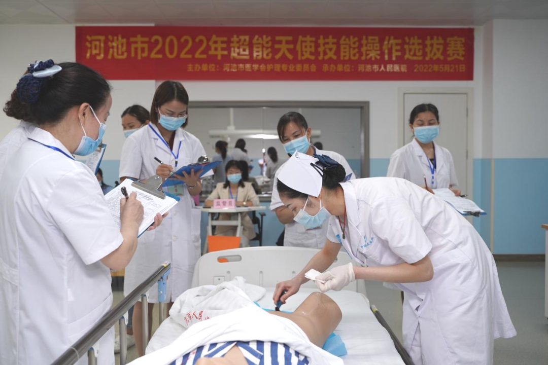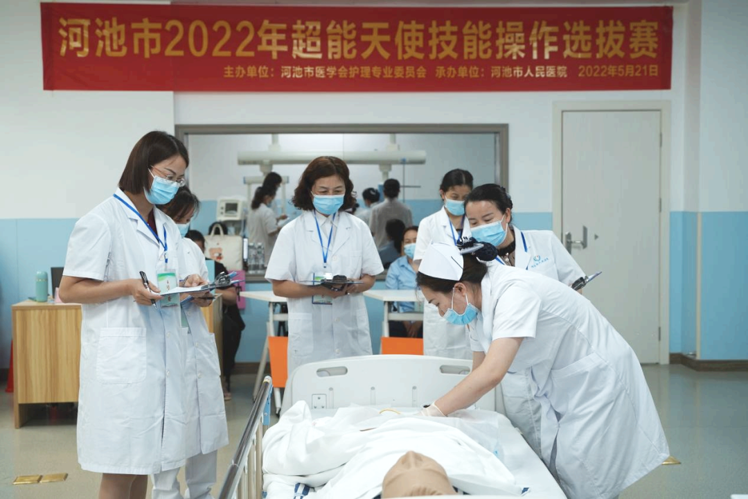 近日,河池市医学会主办、河池市人民医院承办了中华医学会泌尿外科医学分会——2022 年“超能天使”大赛河池赛区的选拔赛。河池市各级医院代表及参赛选手共40队参加,由10位护理专家担任裁判员。