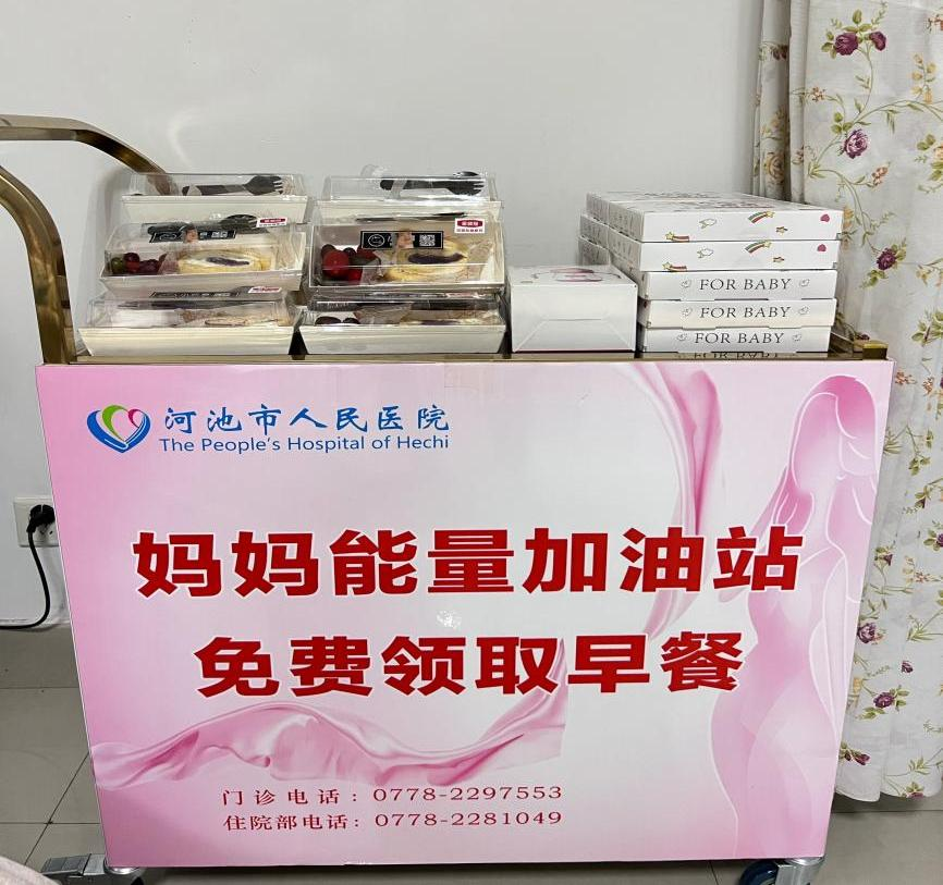 近日,河池市人民医院产科门诊创新服务模式,为前来产检的孕妈妈们设置“能量加油站”,即给孕妇及家属免费提供水果、糕点、水杯、健康宣传册等,既可以让候诊孕妇及家属补充能量,还可以阅读健康宣传册,缓解孕妈妈们的紧张情绪。