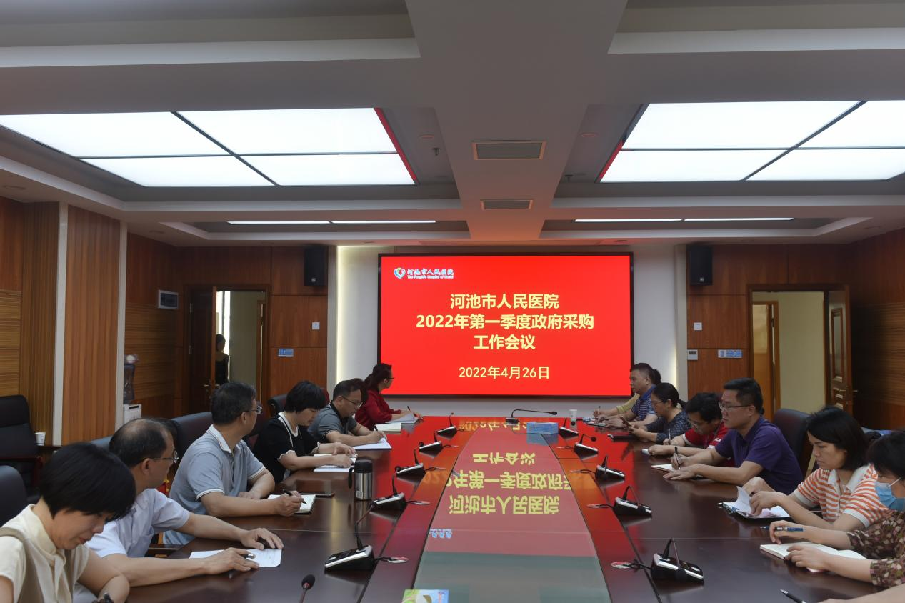 2022年4月26日,河池市人民医院在教学综合楼7楼行政会议室召开2022年第一季度政府采购工作会议。张雅总会计师主持,分管院领导和采购办、药剂科、信息科、医疗器械科、总务科、纪检监察室、审计科、财务科等相关采购管理科室负责人及采购管理岗位人员参会。
