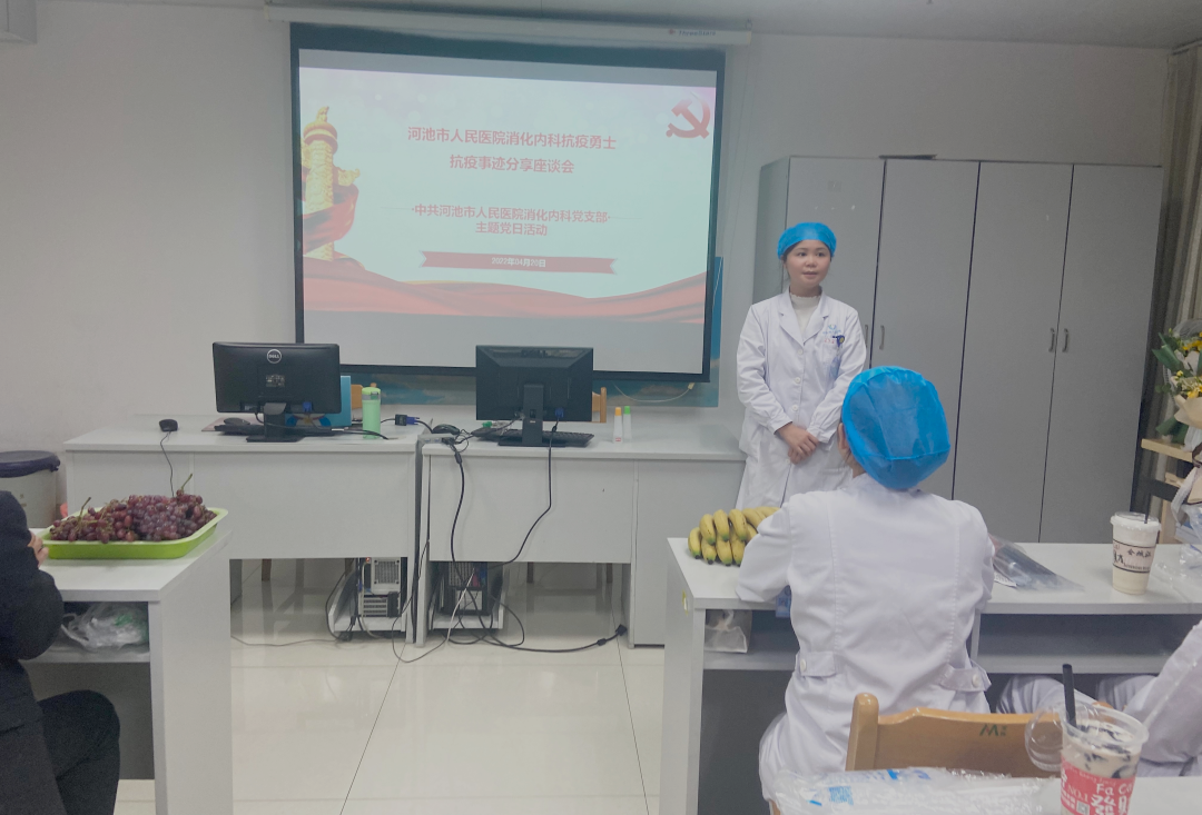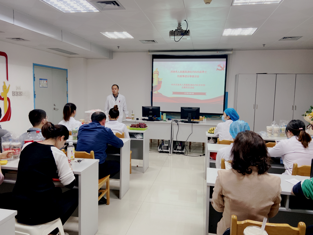 为了持续开展“学习身边榜样”活动,营造学习抗疫英雄、弘扬抗疫精神的良好氛围,2022年4月20号,消化内科党支部举行“学习身边榜样”主题党日活动。活动由党支部书记姚朝光主持,党委委员副院长黄明棣参加。