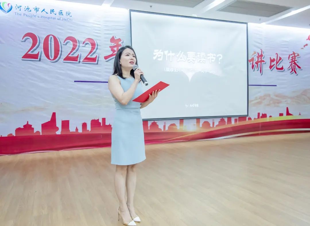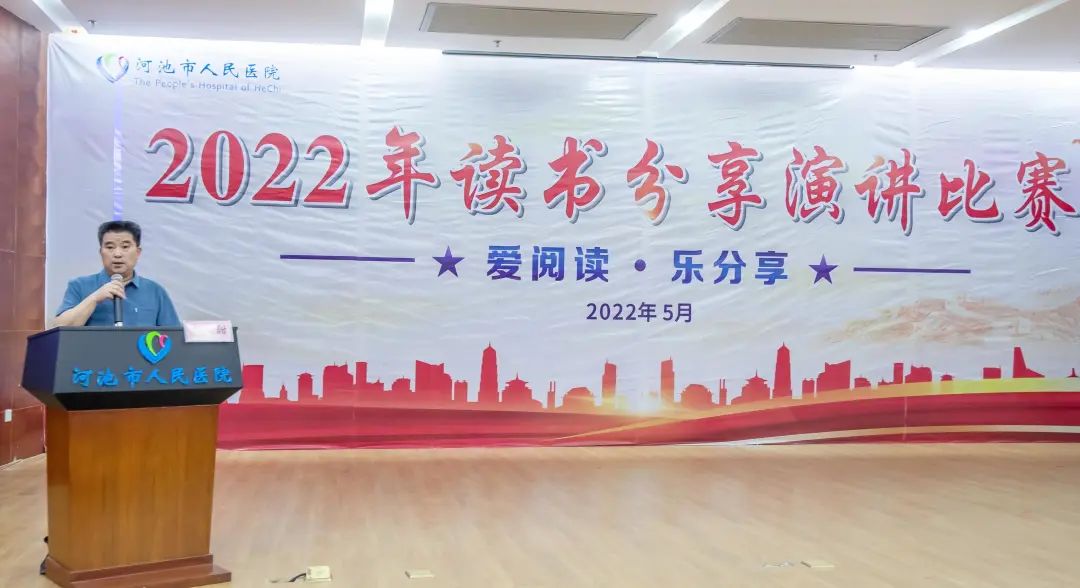 为了全面提高医院职工的阅读意识,推进“书香河医”建设,全面提升全院职工人文素养,5月19日,河池市人民医院在门诊综合楼23楼多功能厅举办读书分享演讲比赛,院领导班子、全院中层干部、各读书小组组长、各工会小组长等参会。
