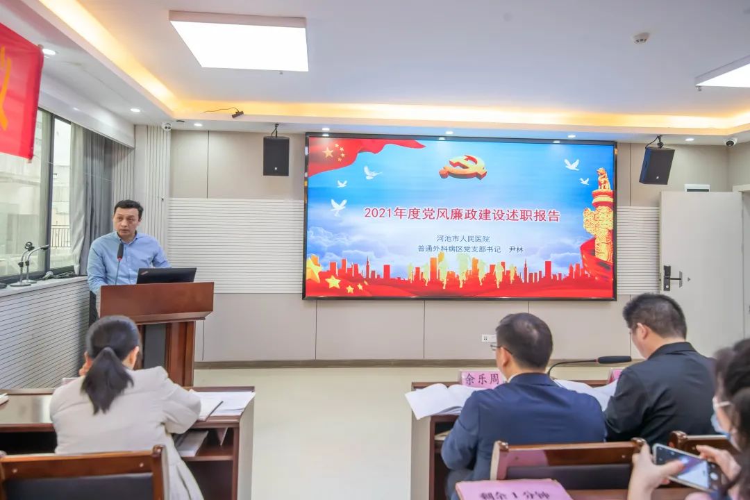 3月25日下午,河池市人民医院召开2021年度党支部书记抓基层党建述职评议考核、推动落实党风廉政建设主体责任述责述廉工作会议。医院领导班子、党委委员、纪委委员、党支部委员、基层党员或群众代表、“两代表一委员”等参加会议,院党委书记韦义甜主持会议。