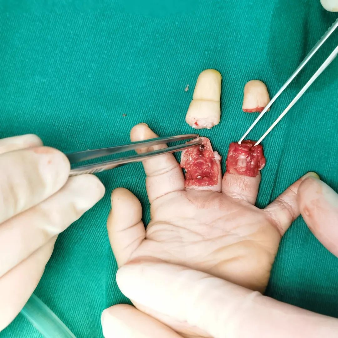 黄大波副主任表示,幼儿手指再植是个精细活,也是个耐力和体力活,手术和护理难度都较大。一方面小儿的组织非常娇嫩,血管、神经以及肌腱纤细,组织辨认较为困难,血管管径极细,吻合技术要求非常高。另一方面,小儿受伤后因心理承受力、配合情况较差,对疼痛、生活习惯的改变等情况反应较强烈,易哭闹,不配合,给手术及术后护理处置带来极大的挑战。因此,把握再植的“黄金时间”、精湛的显微技术及细致的术后护理是确保再植成功的关键。