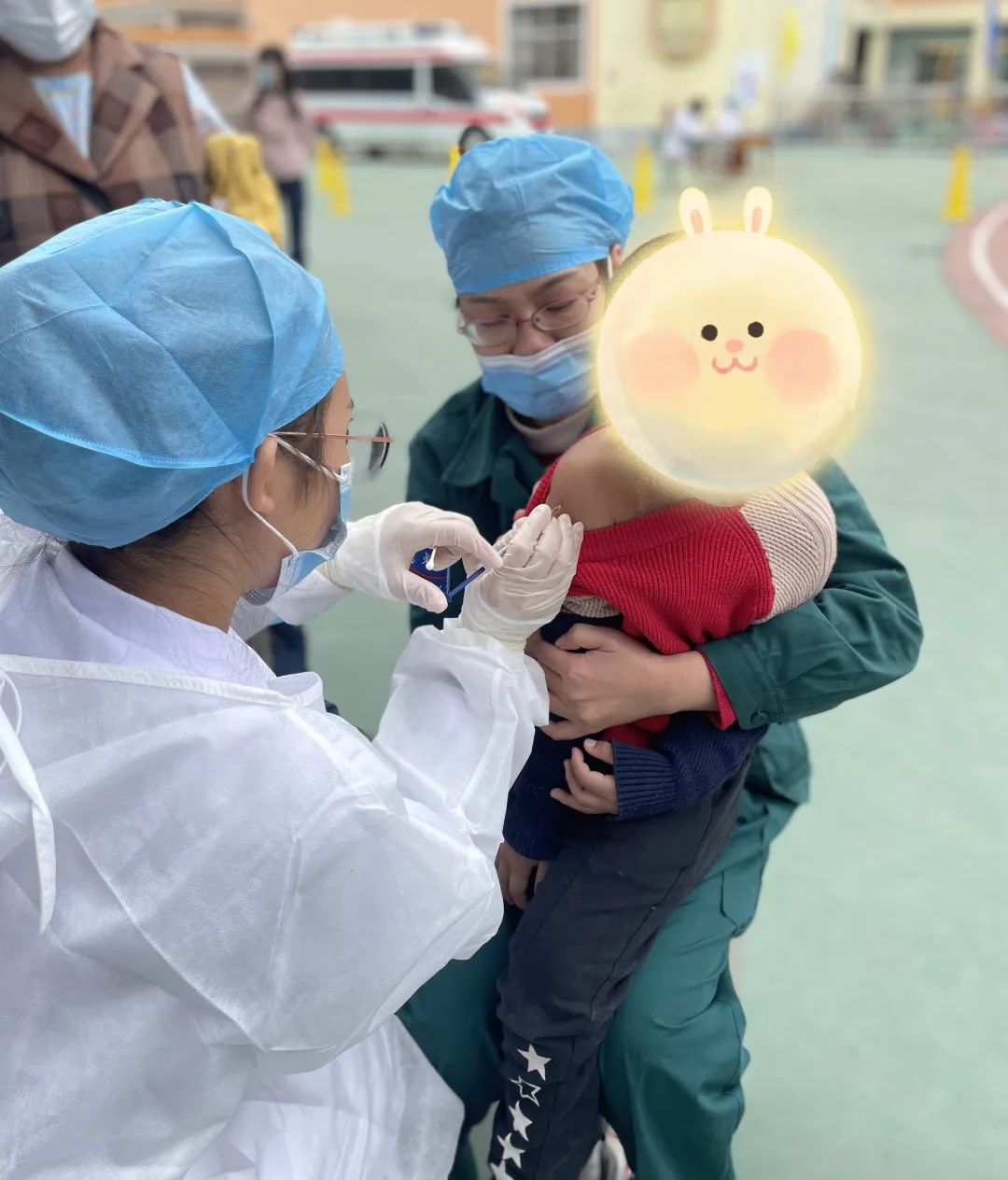 图为急诊科医务人员赴校园协助进行新冠疫苗接种保健工作