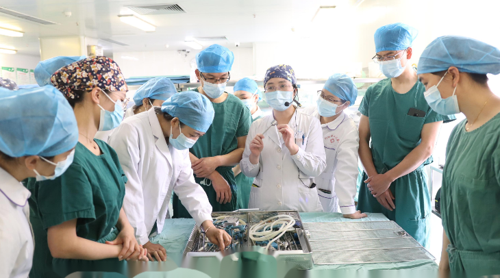 手术室组长现场演示腹腔镜器械拆卸、组装