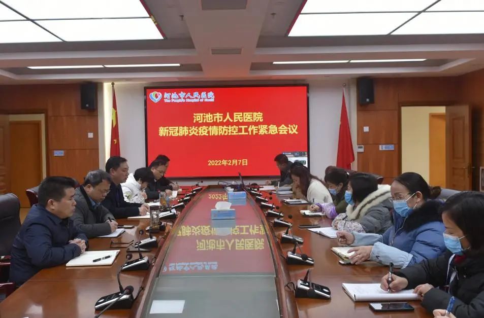2月7日,河池市人民医院召开新冠肺炎疫情防控工作紧急会议。会议传达了河池市疫情防控指挥部工作会议精神,通报全区疫情有关情况,部署医院疫情防控工作。院领导班子成员、行政职能部门负责人参加会议。