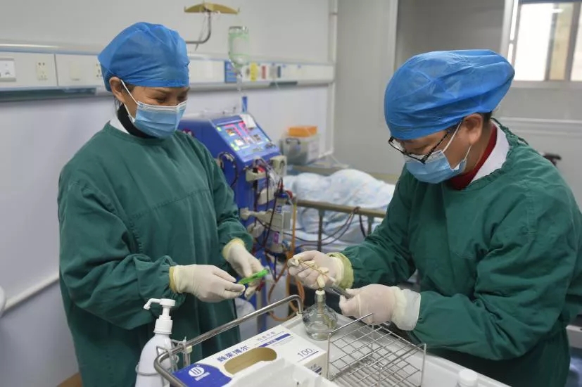 院感科韦玲科长与肾内科覃勋主任现场调查