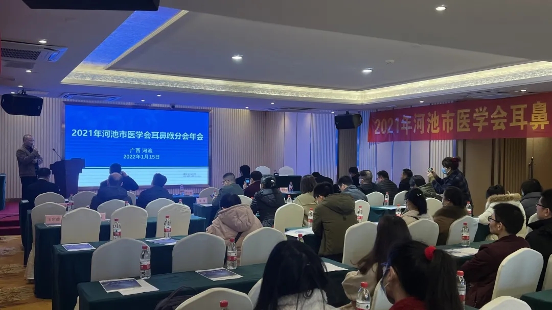 为进一步提高肿瘤规范化诊疗水平,2022年1月15日,由河池市人民医院承办的“河池市头颈部肿瘤治疗新进展研讨会暨2021年河池市医学会耳鼻喉科分会年会”在维也纳酒店举行。河池市医学会耳鼻喉分会会长谭宇敏、河池市人民医院韦仁杰副院长参加会议。