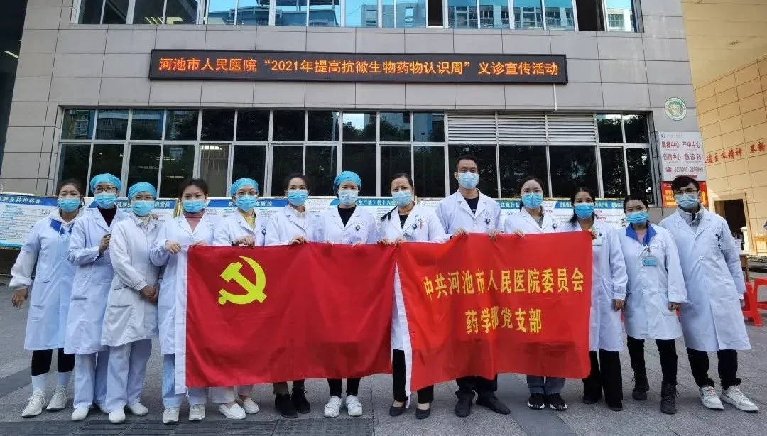 为广泛宣传抗微生物药物合理使用知识,提高公众对耐药的认知水平,遏制抗微生物耐药发展与蔓延,2021年11月18日,河池市人民医院药学部开展“扩大认知,遏制耐药”提高抗微生物药认识周义诊活动。
