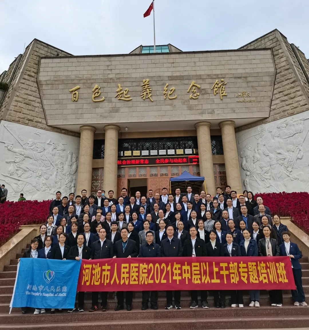 为深入学习贯彻习近平新时代中国特色社会主义思想和十九届六中全会精神,进一步提升医院中层以上干部队伍的综合素质和服务水平,11月22日至26日、12月13日至17日,河池市人民医院依托百色干部学院开展2021年“秉承初心开拓进取,争做新时代好干部”全院中层以上干部专题培训班。培训班分2期,由医院领导班子成员分别带队,各科室中层干部共同参加培训。