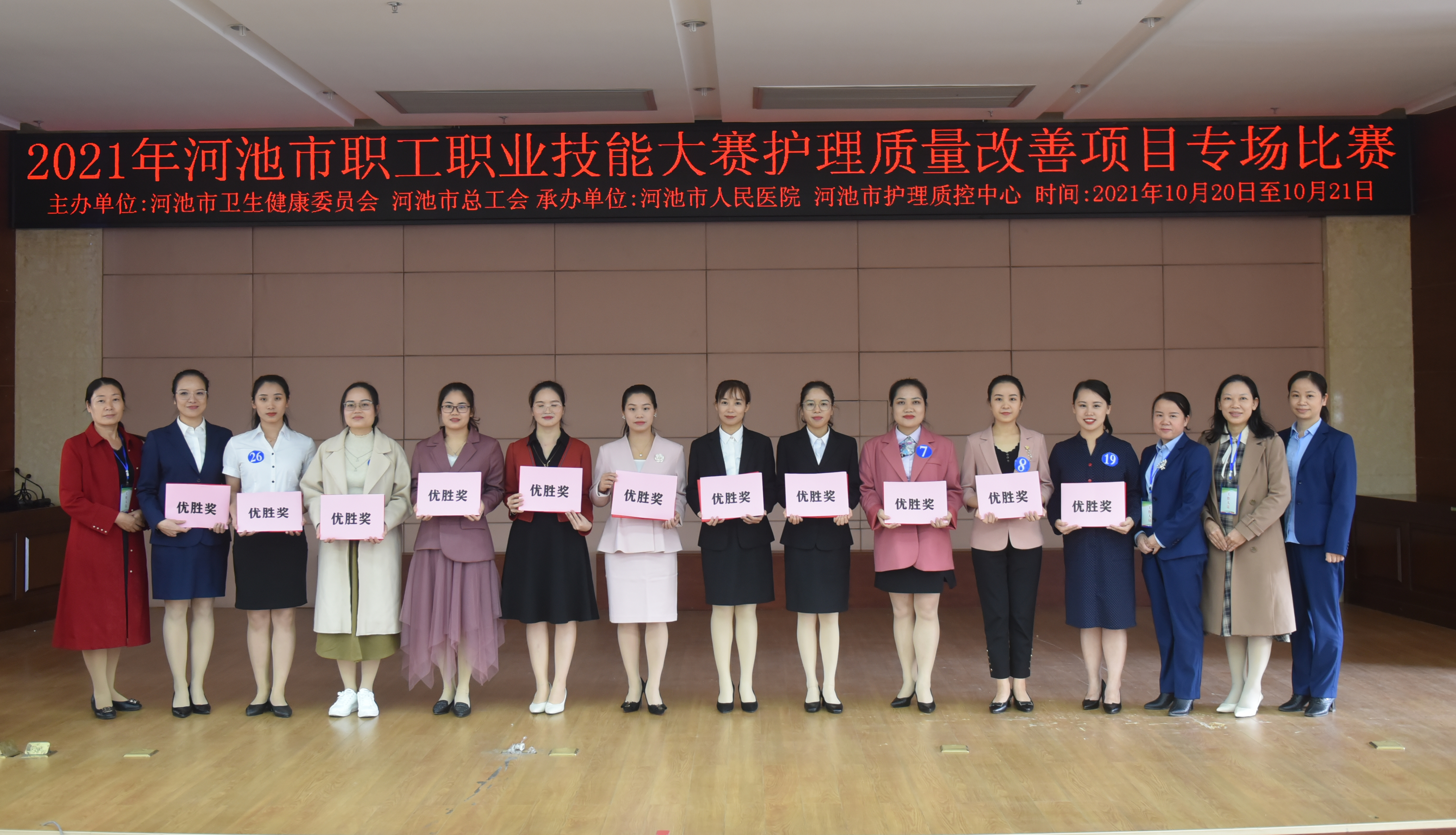 2021年10月20日至10月21日,河池市人民医院成功举办“2021年河池市职工职业技能大赛护理质量改善项目专场比赛”。本次比赛由河池市卫生健康委员会、河池市总工会主办,河池市人民医院、河池市护理质控中心承办,16家医疗机构共29位参赛选手参加。