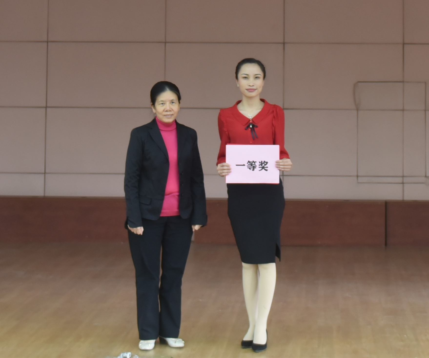 获一等奖选手与评委合影