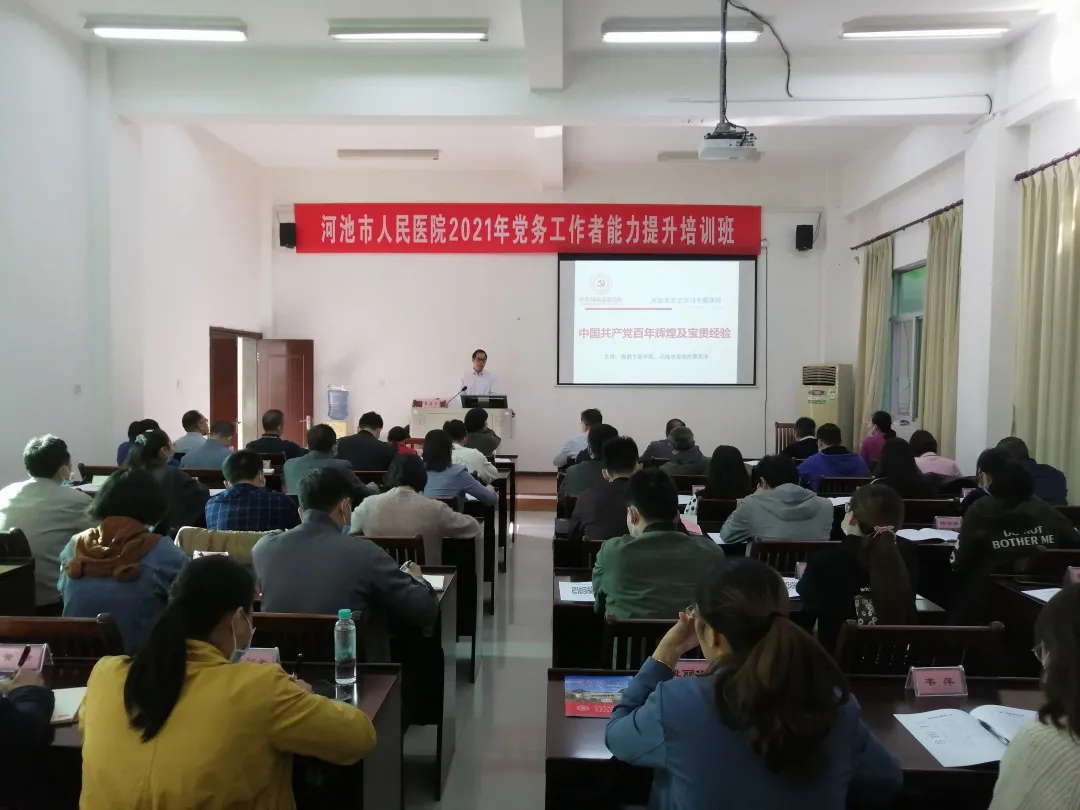 为适应新时期党建工作的需要,加强基层党组织建设,全面提升医院党务干部的能力素质和业务水平,10月26日至10月29日,医院党委分2批次在河池市委党校举办2021年党务工作者能力提升培训班。全院共计100余名党务干部参加了此次培训。