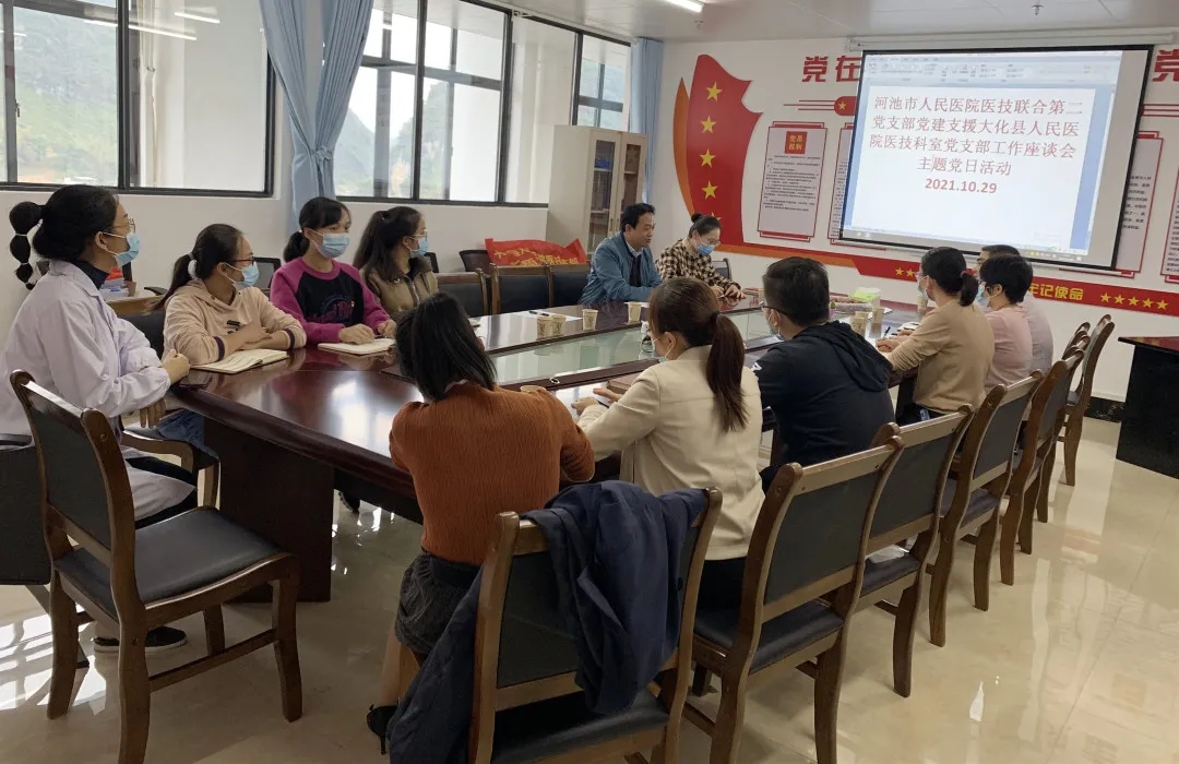 10月29日下午,河池市人民医院医技联合第二党支部组织病理科医师和技师赴大化县人民医院开展党建医联体主题党日活动。