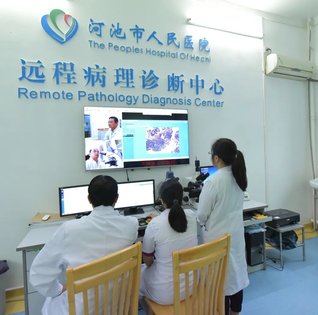 近年来,河池市人民医院以信息化建设为支撑,在5G+医疗健康应用等方面不断探索,取得了显著成效。医院从2015年就开始搭建远程会诊平台,到2017年又陆续上线了远程病理诊断、远程心电诊断、远程影像诊断平台,目前医院正在筹备上线第二代远程会诊平台,让基层人民群众免受舟车劳顿之苦,即可享受国家三甲医院的医疗服务。2021年7月上线的“5G+体检车”,在车上部署了5G信号发射器,实现了车上体检数据与院内系统同步,车开到哪数据就到哪,极大地方便了广大人民群众的体检需求。