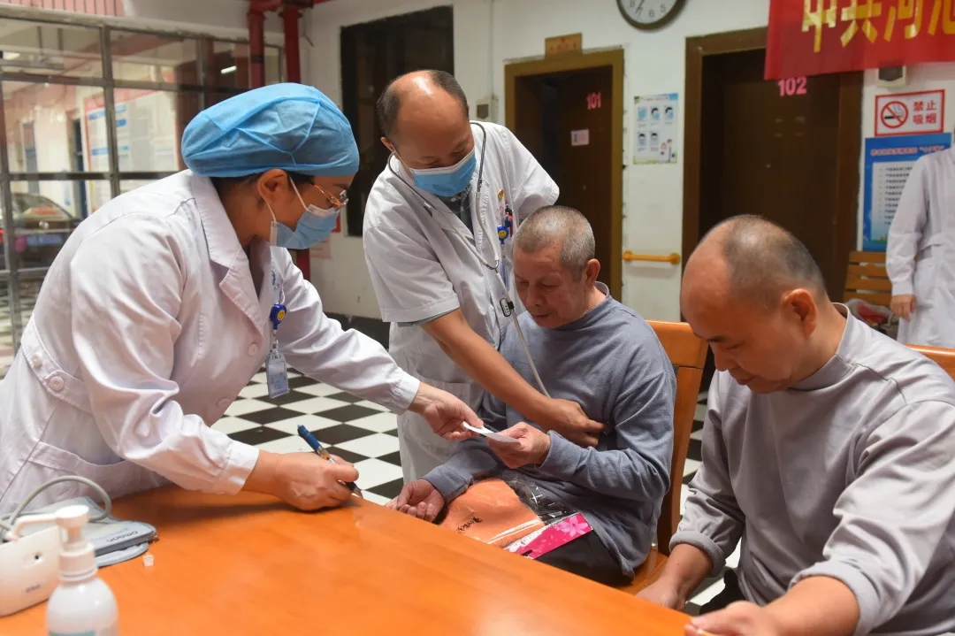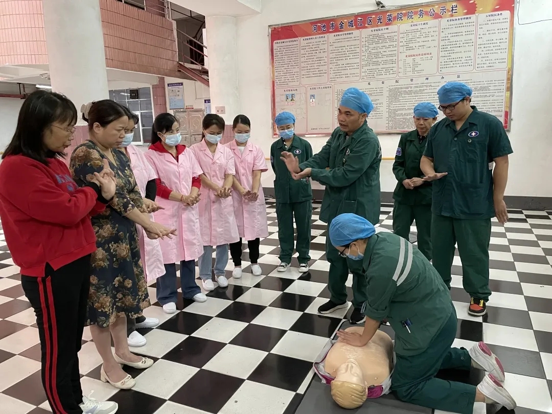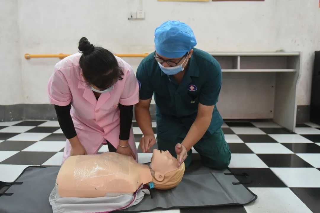 活动中,大家为福利院老人们 送去节日问候和慰问品。随后,医护人员耐心细致地为老人们进行健康宣教,免费测量血压、血糖,了解他们身体状况和生活情况等。同时,医护人员对福利院工作人员进行急救知识培训、心肺复苏操作示范,并指导福利院工作人员进行演练,以便更好地照顾老人们。