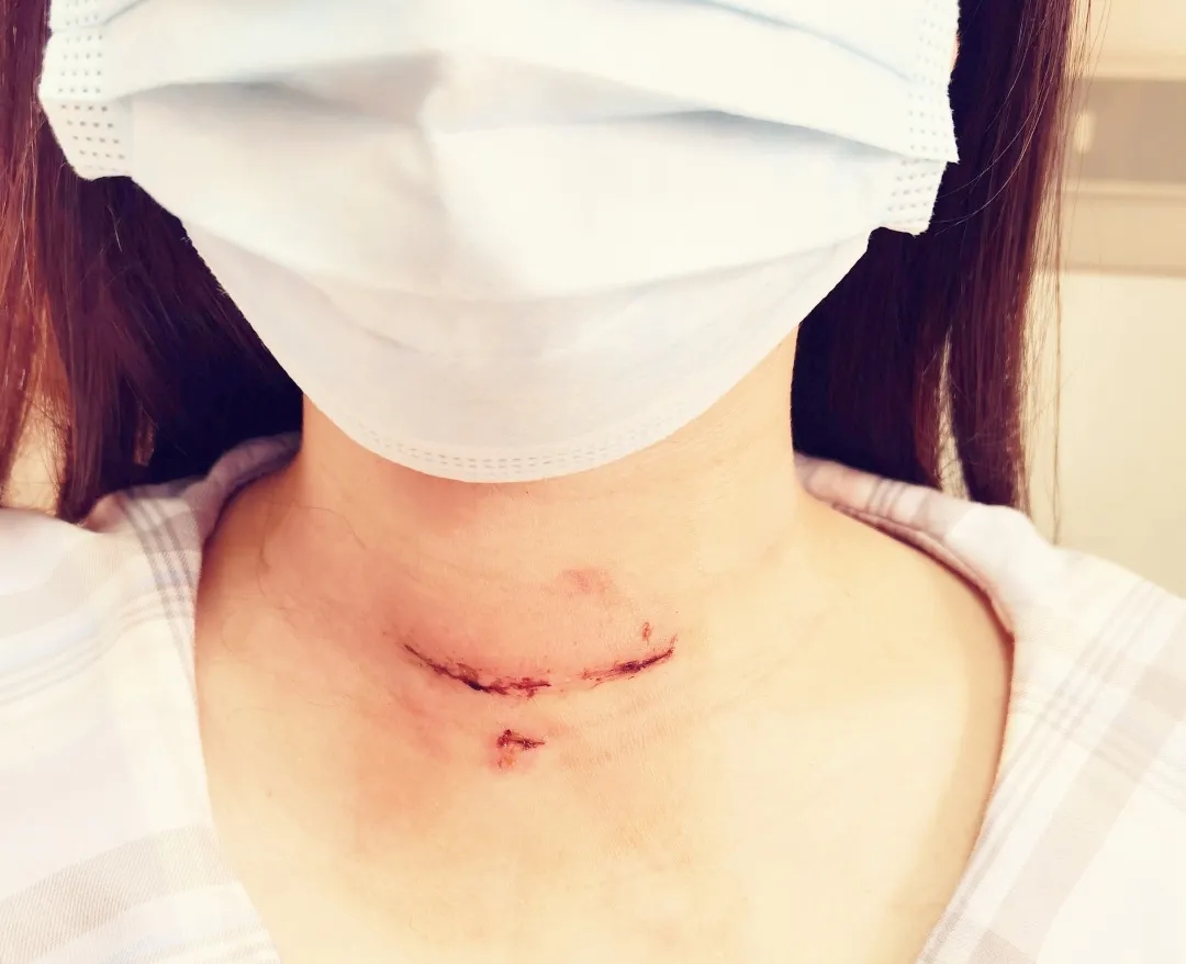 近日,我院甲状腺乳腺外科为一名26岁的甲状腺患者行腔镜甲状腺手术,手术顺利,效果极好。