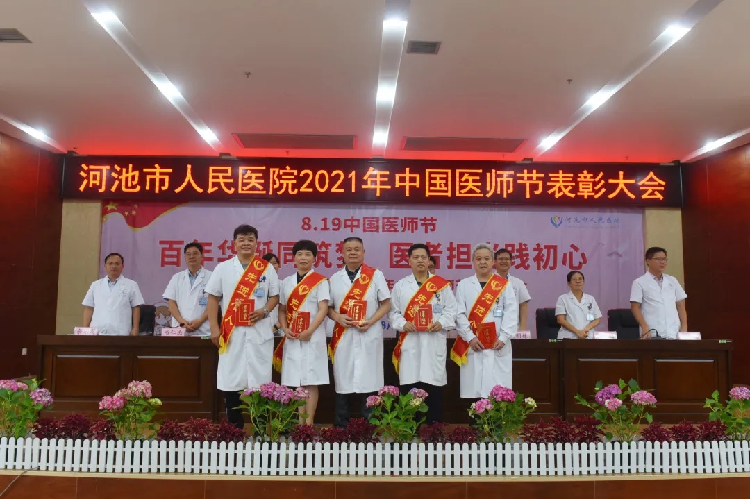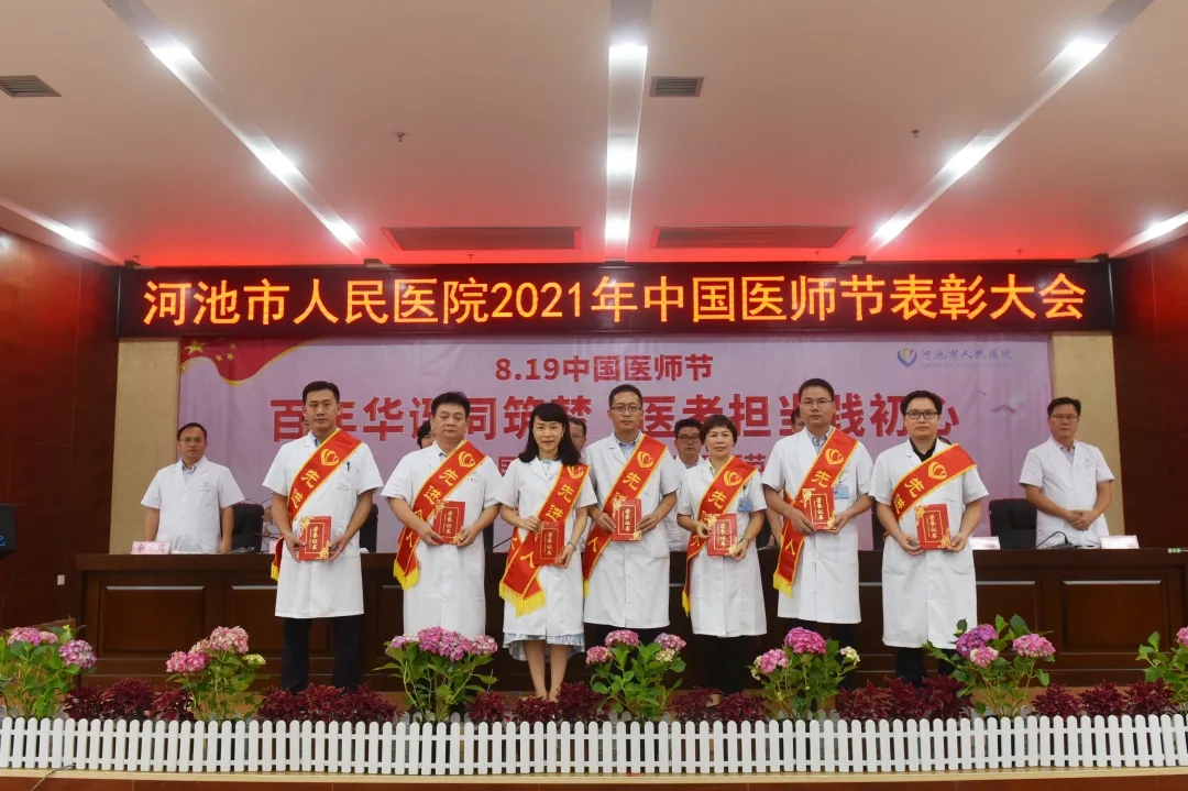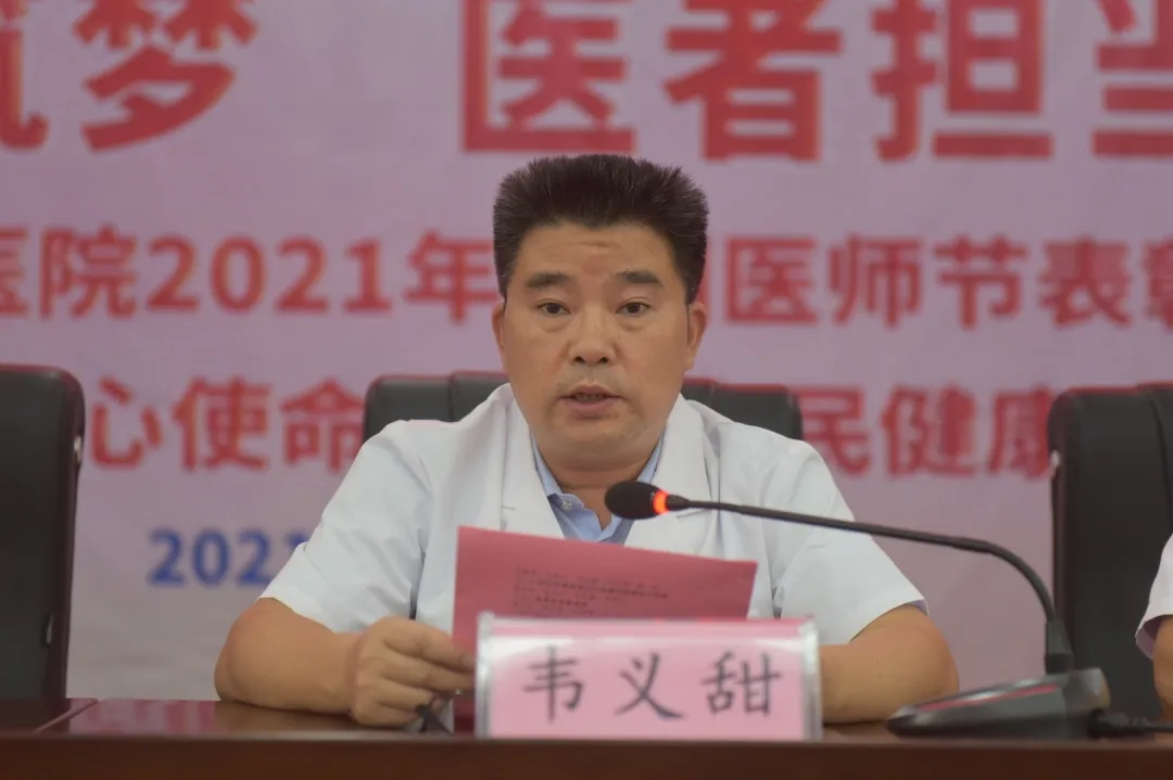 庆祝第四个8·19“中国医师节”,我院围绕“百年华诞同筑梦,医者担当践初心”主题,开展庆祝医师节慰问活动,并在医院门诊综合大楼23楼多功能厅召开中国医师节表彰大会,全院中层以上干部、全院医师和技师人员共350余人参会,韦仁杰副院长作主持。