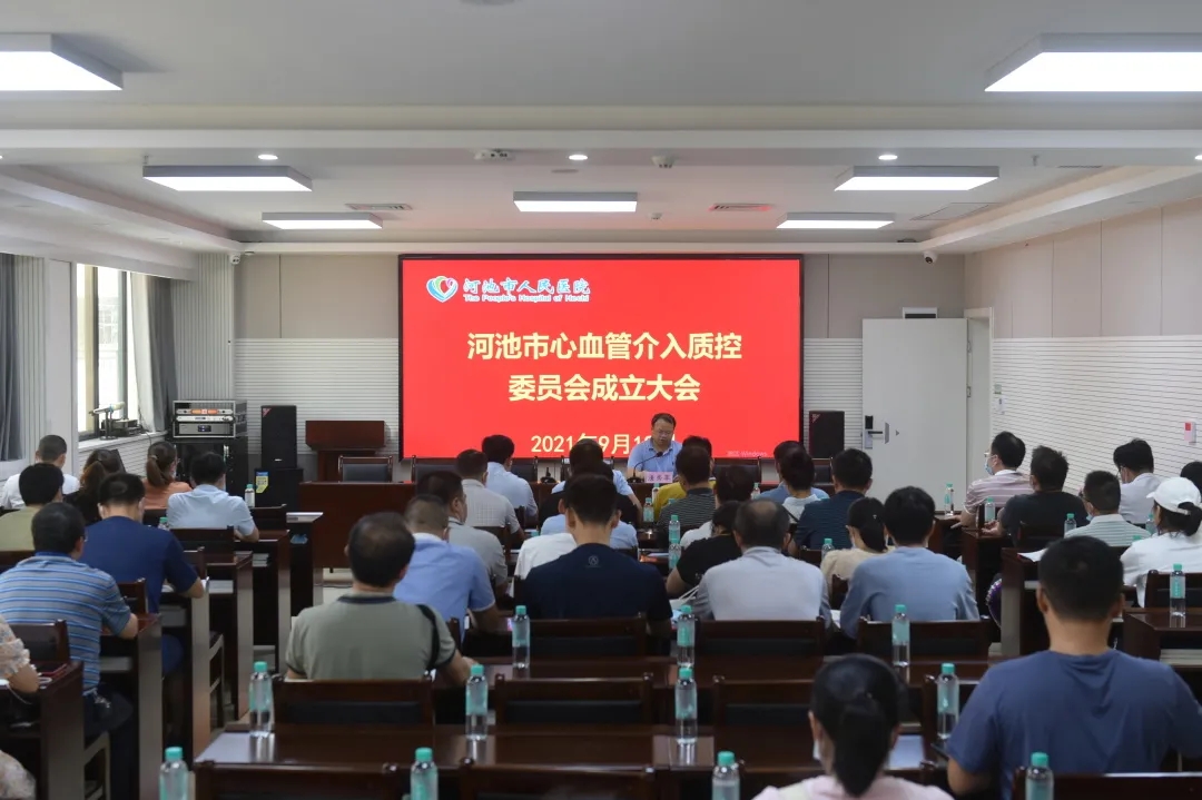 9月12日,河池市心血管介入诊疗技术质控会暨市心血管介入质控委员会成立大会在河池市人民医院召开。河池市卫生健康委员会欧乃坚副主任出席会议并讲话。大会邀请到广西心血管疾病介入质控中心秘书、广西医科大学第一附属医院黄江南教授;中国胸痛中心飞检专家、广西胸痛中心质量控制中心秘书曾晓聪教授;广西医师协会中医心血管病专业委员会主任委员、广西中医药大学第一附属医院何贵新教授;中国胸痛中心认证专家、柳州市工人医院胸痛中心技术处主任王红教授以及河池市心血管学术委员会主任委员、市人民医院唐秀革院长等专家授课。医院党政领导、胸痛中心相关成员及全市各医疗机构相关人员共120余人参会,会议由河池市人民医院余乐周副院长主持。