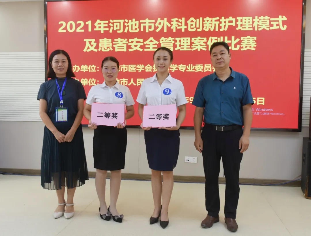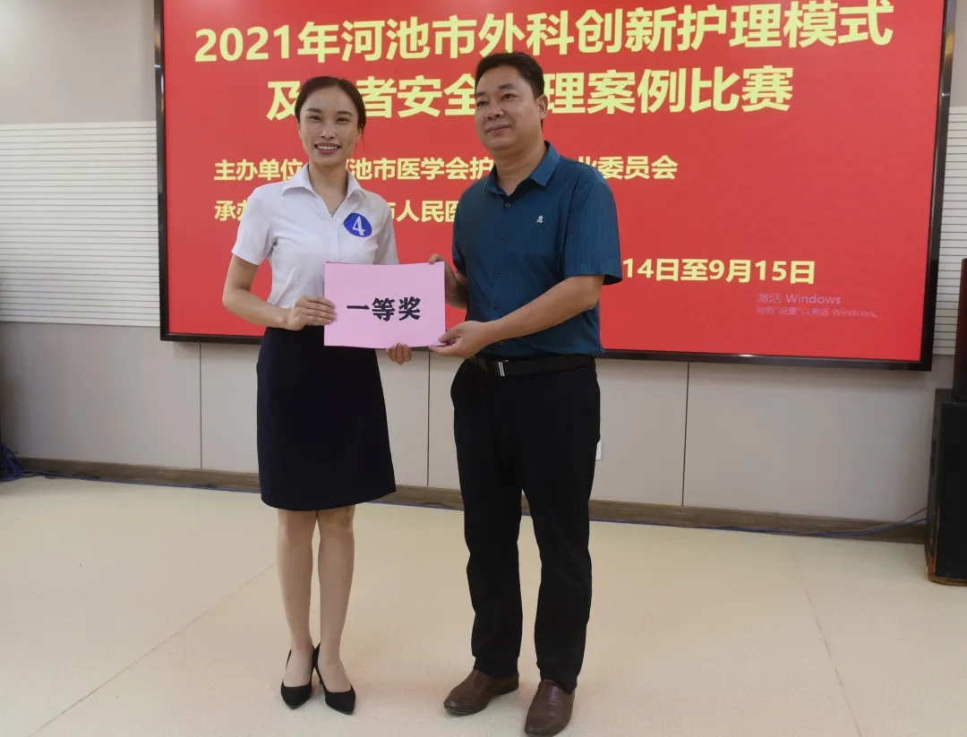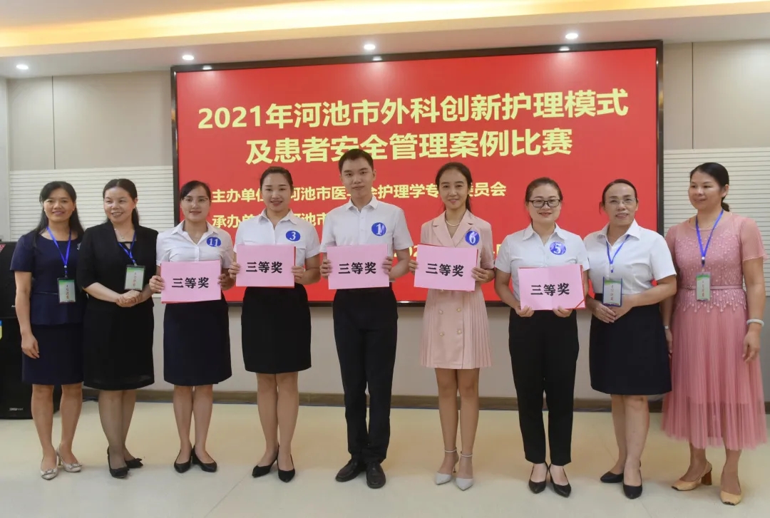 经过紧张的角逐,比赛评出一等奖1名,二等奖2名,三等奖5名,优秀奖7名。河池市人民医院黎思源拔得头筹,河池市人民医院覃铄媚、河池市第三人民医院莫丁玲喜获二等奖,河池市第三人民医院余彤、南丹县人民医院莫超、河池市宜州区人民医院袁小华、河池市第一人民医院李文妮、南丹县人民医院李旭华喜获三等奖。同时,河池市人民医院创伤手外科、脊柱关节骨病外科的2个优秀案例将代表河池市外科护理团队,参加广西护理学会举办的2021年外科创新护理模式及患者安全管理案例征集评选活动。