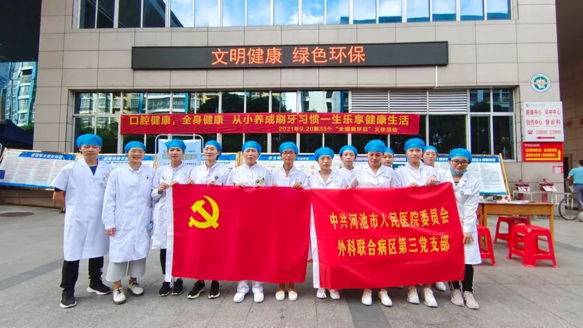 为了进一步提升群众口腔健康素养水平,促进口腔健康保健意识,9月17日,在全国第33个“爱牙日”到来之际,河池市人民医院口腔科在医院门诊综合楼前开展“全国爱牙日”文明实践活动。