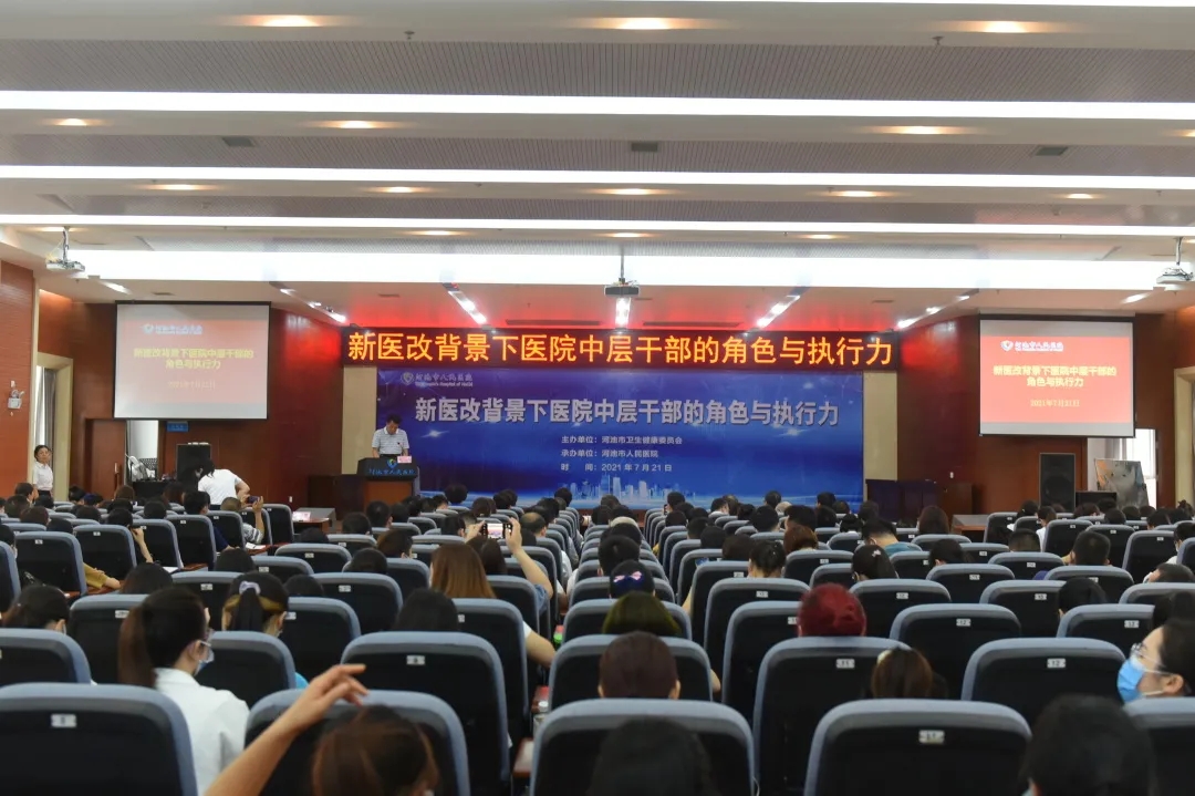为进一步加强我院中层干部队伍建设,打造高效的人才团队,提升整体管理水平,7月21日,我院邀请广西护理学会杨连招理事长就“新医改背景下医院中层干部的角色与执行力”进行专题授课。本次讲座由河池市卫生健康委主办,河池市人民医院承办。我院领导班子、党委委员、纪委委员、各党支部委员、全院中层干部以及河池市第一人民医院、河池市妇幼保健院、河池市中医医院、河池市第三人民医院部分中层领导干部500余人参加。讲座由市卫生健康委副主任文彪主持。