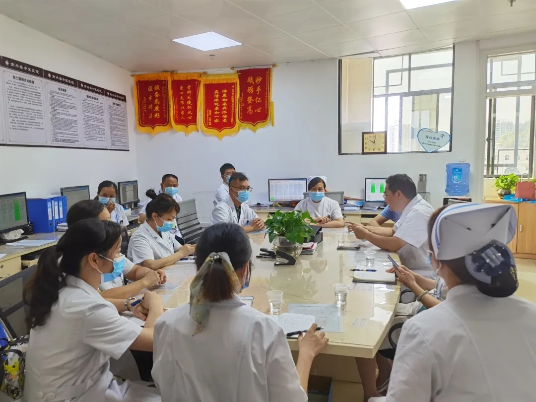 医务科科长韦金华带领同质化管理团队在南丹县中医医院骨伤科开展党建医联体同质化查房工作;院感科韦玲主任医师对南丹县中医医院医务人员进行新冠肺炎德尔塔毒株的传播特点及防控相关知识培训,并对发热门诊、预检分诊、防护物资储备、院感管理等方面进行指导。