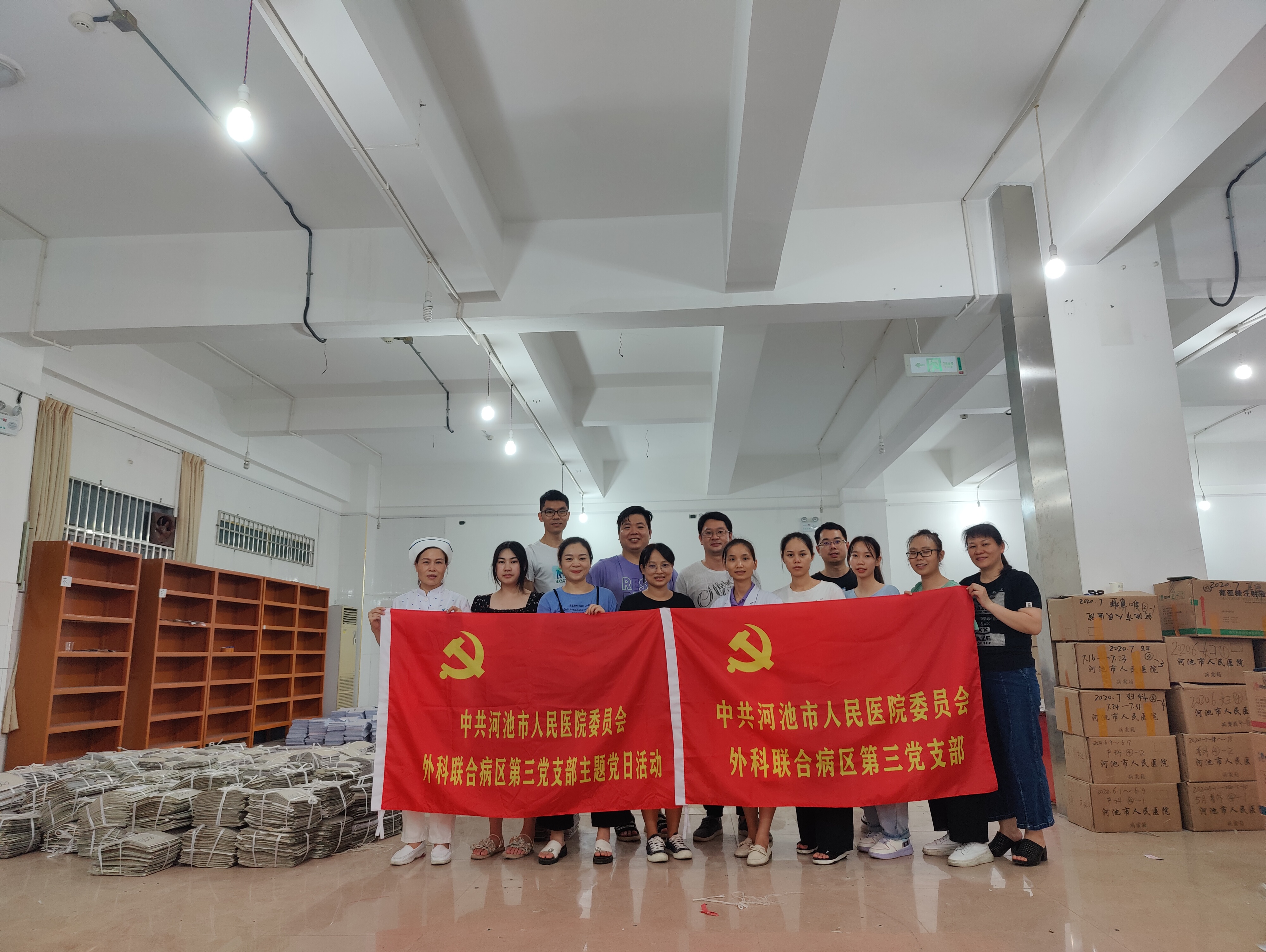 由于医院业务的不断扩大,原病案室已不能满足日常工作需要,需要在短时间内完成病案打包和搬迁。多年来的纸质病案,数量多,需要按顺序编号进行打包后方能搬迁,避免错漏。院党委号召全院在职党员积极参与病案打包工作。全院32个党支部党员及各团支部团员积极响应医院党委号召,纷纷报名。在炎炎夏日里,汗流浃背,克服种种困难,打包搬运病案。短短几天时间,让原本工作量巨大的打包搬运工作顺利完成,为病案室搬迁争取了时间。