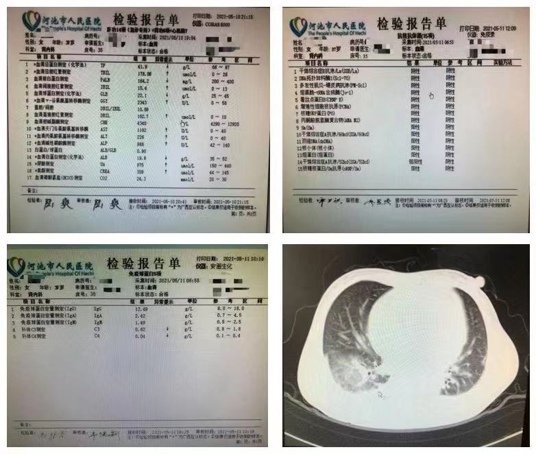 2021年5月7日,37岁的王女士因为双腿水肿20天到我院肾内科住院,经查体,患者双下肢呈重度对称性凹陷性水肿,面部、颈部都有散在的红色皮疹,口腔粘膜多处溃疡。据了解,今年4月中旬,王女士察觉自己的双腿出现水肿,并且越来越严重,同时尿量也减少至原来的一半,还伴有浑身无力,胸闷气紧、胃口差,严重脱发、面部不明皮疹等不适症状。初步检查结果提示,王女士患有系统性红斑狼疮(自身免疫性疾病),同时合并急性肾衰竭、重症自身免疫性肝炎、自身免疫性溶血性贫血及狼疮性肺炎等严重并发症。王女士随时会出现心力衰竭、急性呼吸衰竭、急性肝衰竭、肝性脑病,甚至猝死!住院期间,王女士更是反复出现精神行为异常,癫痫发作,病症来势汹汹。各种危险信号直指狼疮性脑病,加上其患有狼疮性肺炎,情况十分危急!