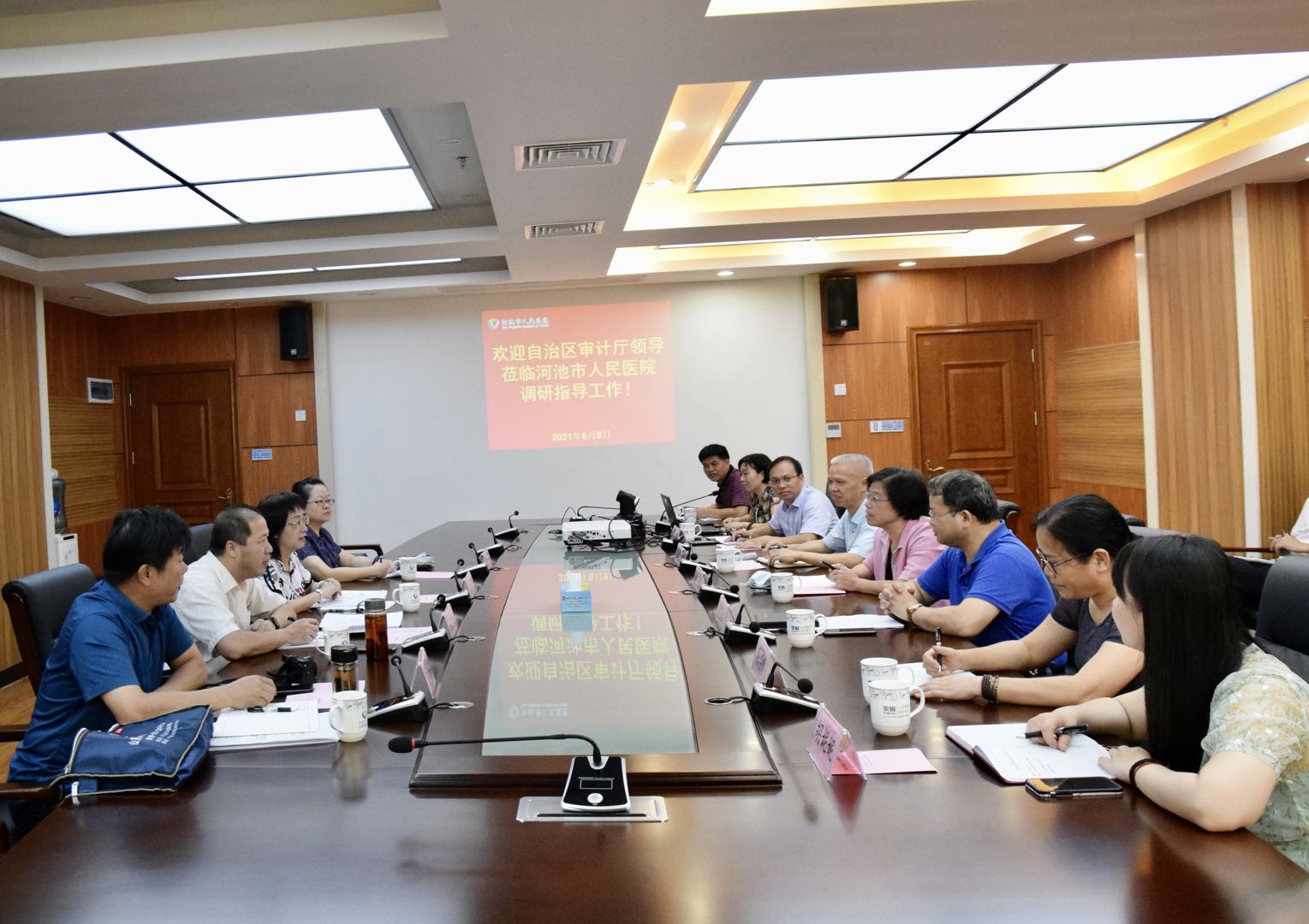 6月9日下午,自治区审计厅内部审计指导监督处二级巡视员、处长李力清一行五人在河池市审计局领导的陪同下到我院开展内部审计调研指导工作。我院唐秀革院长、余乐周副院长及相关部门负责人参加调研座谈会。