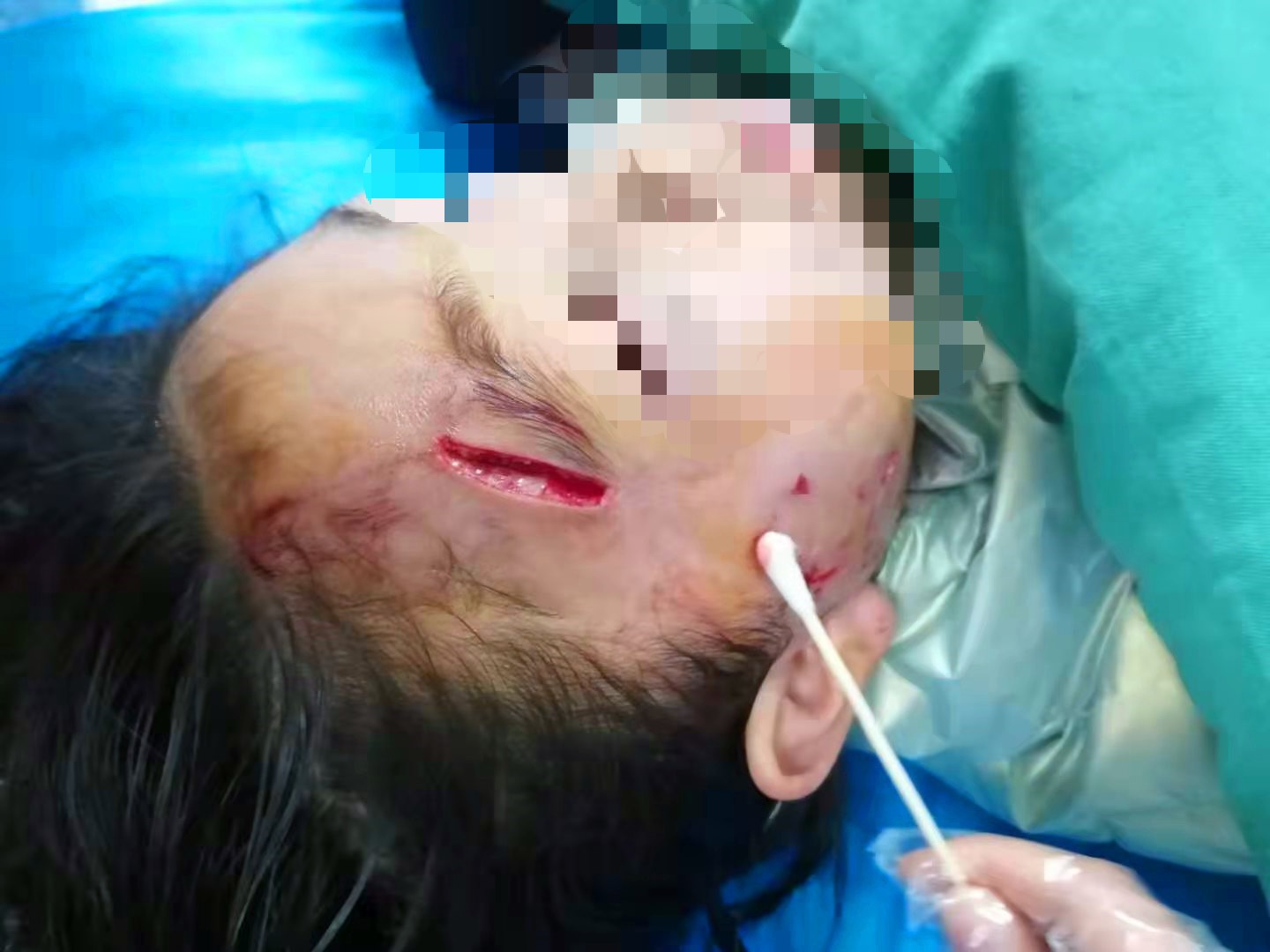 据了解,患儿苗苗不慎被狗咬伤导致头面部、眼角皮肤损伤,满脸是血,疼痛难忍。苗苗家人辗转3个多小时后,将苗苗送送到我院急诊科犬伤处置门诊进行救治。