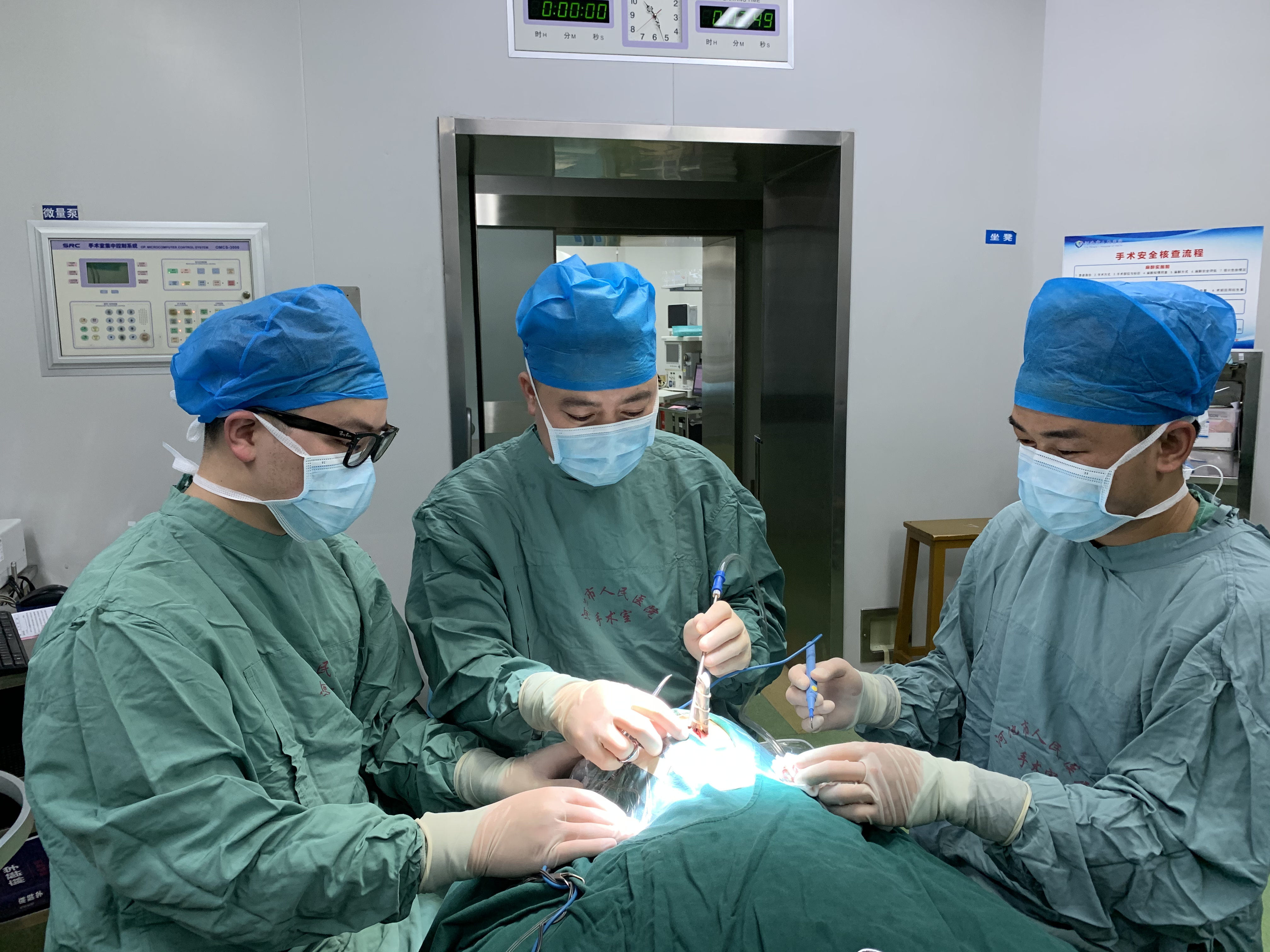病情危急!神经外科罗铸主任和李科良主管医生立刻组织医疗团队进行病例讨论和病情评估,制定手术方案,联系手术室,开通绿色通道。在最短时间内将患儿送入手术室,行脑切开异物取出术,移除了这把威胁患儿生命的剪刀。目前患儿已清醒,病情平稳,成功脱离了生命危险,精神状态良好。