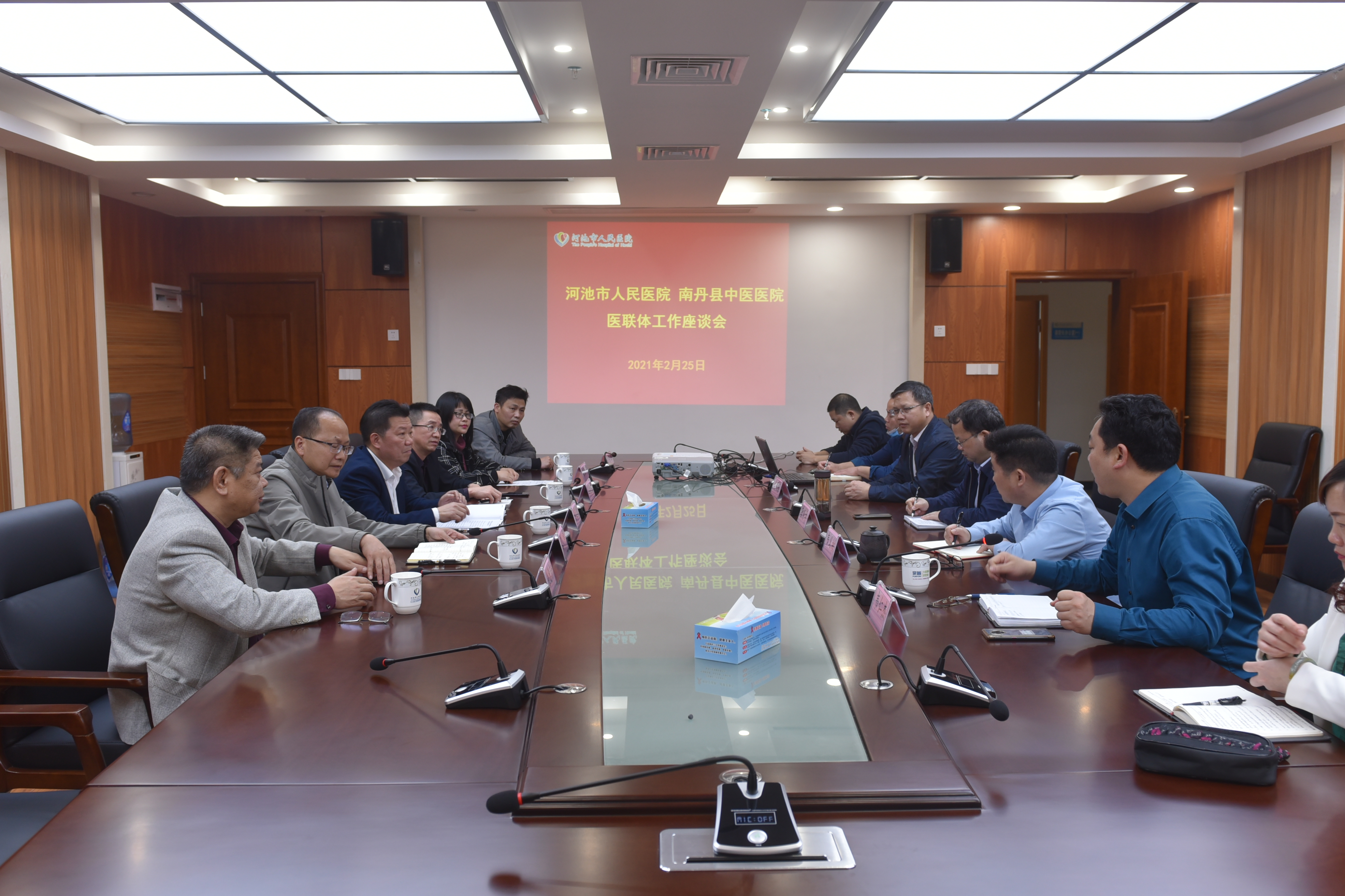 2月25日,我院与南丹县中医医院医联体座谈交流会在我院教学综合楼7楼党员活动室召开,双方院领导、相关职能科室和临床科室负责人参加座谈会。