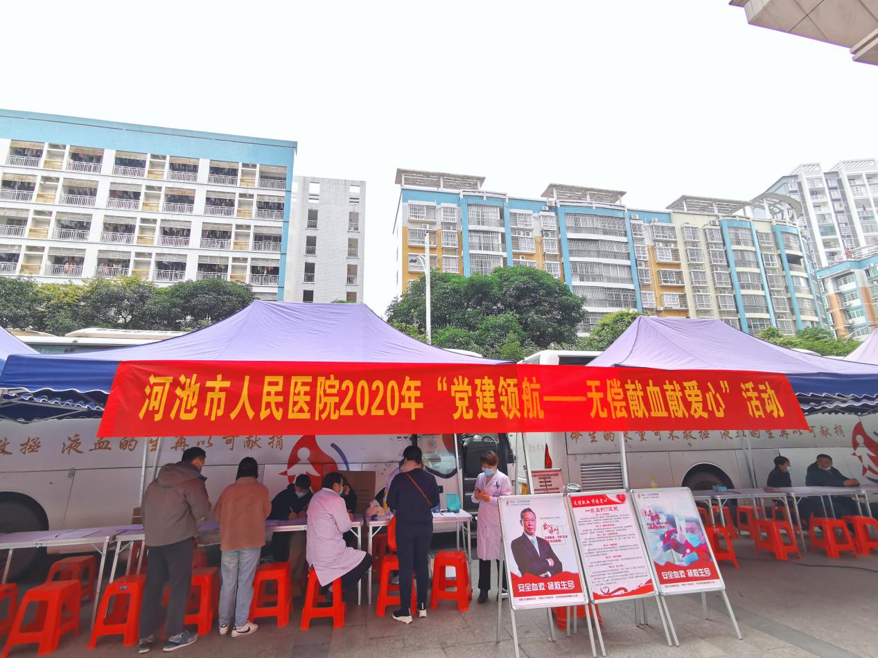 12月10日,我院携手市中心血站在医院门诊综合大楼前举办2020年“党建领航——无偿献血献爱心”主题献血活动。