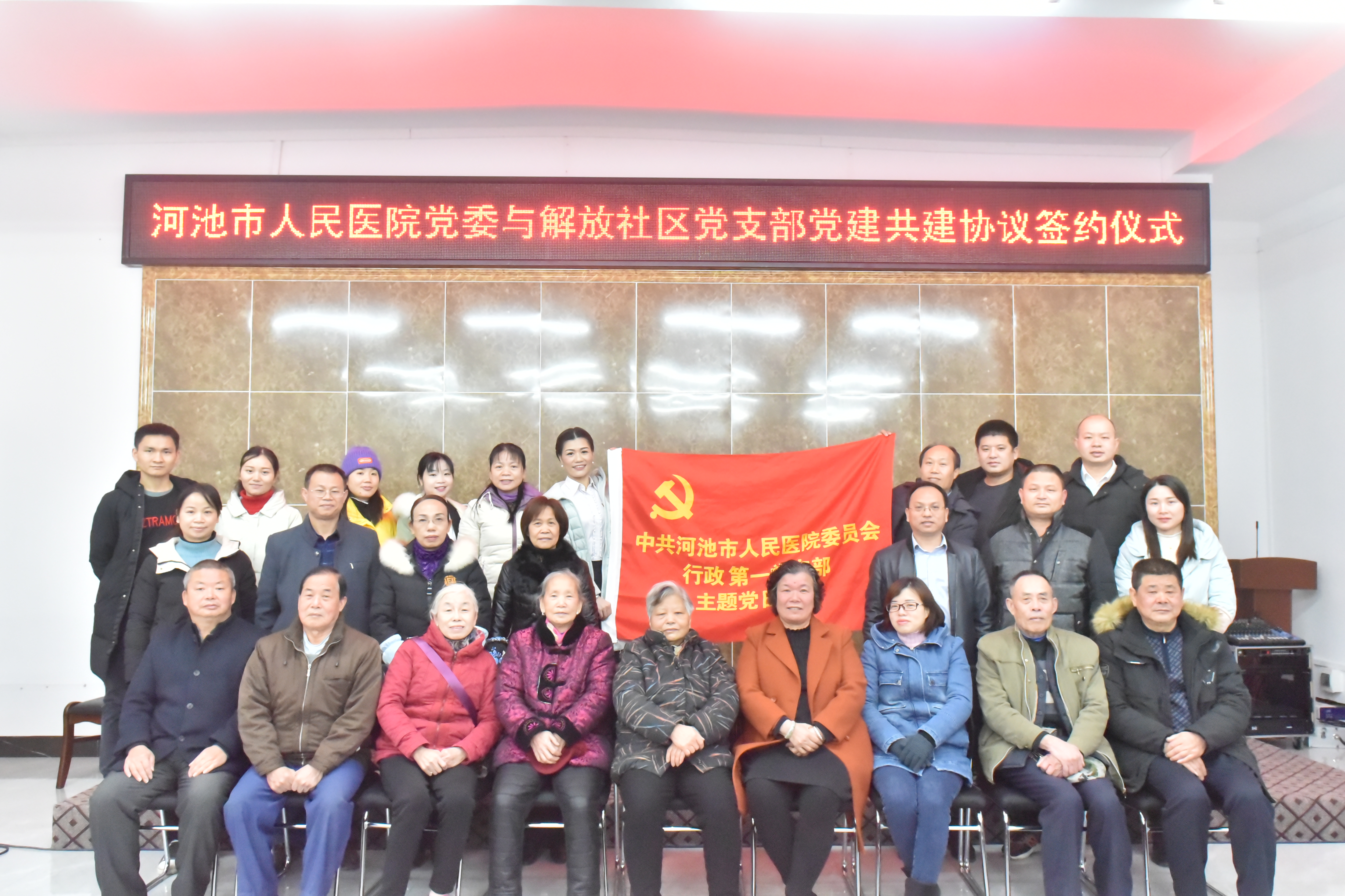 2020年12月18日下午,我院余乐周副院长带领党政办、医务科、护理部等一行13人,到金城江街道解放社区签订党建共建协议,并进行党建工作交流。