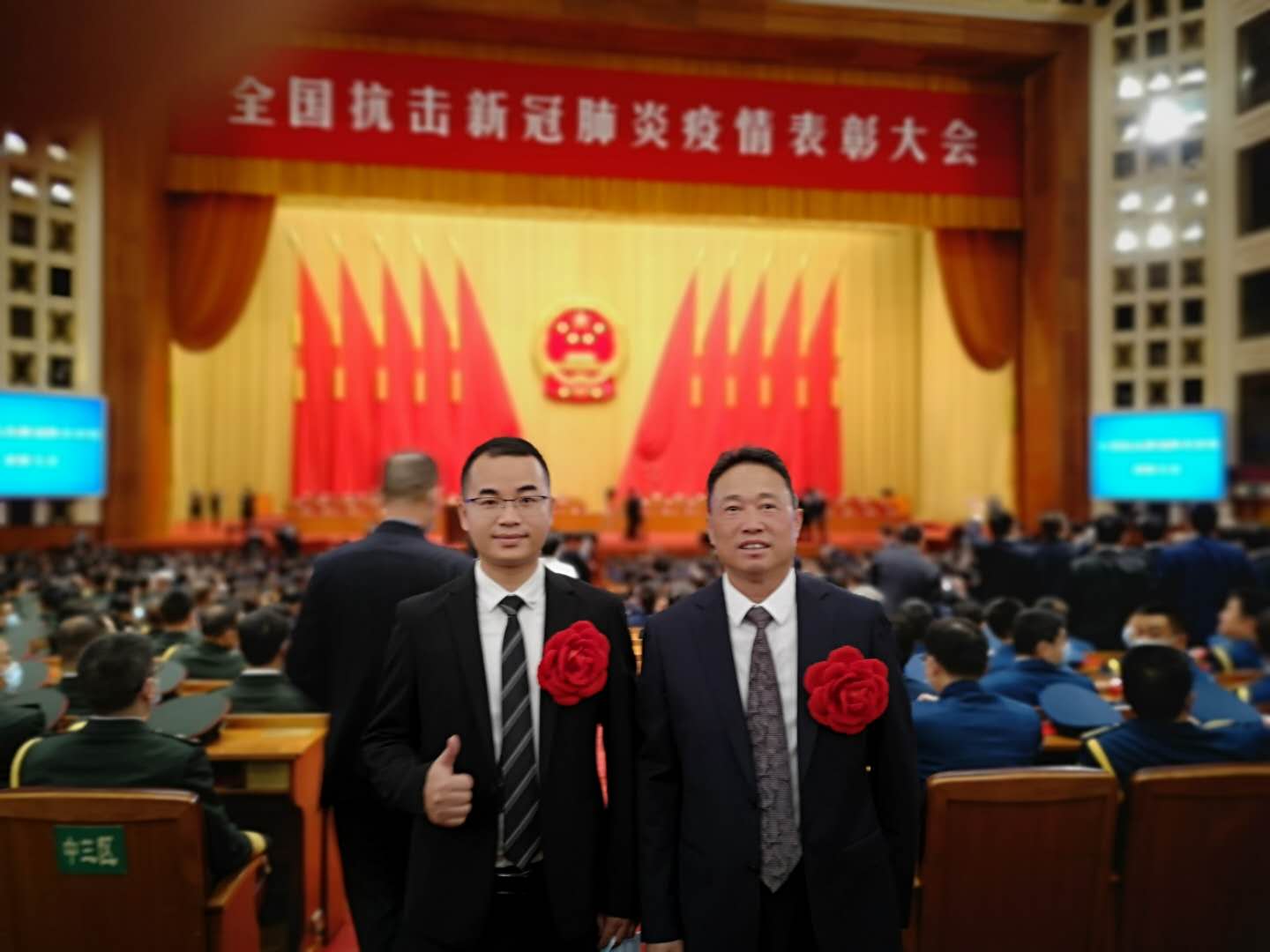 兰祖(图左)在表彰大会现场
