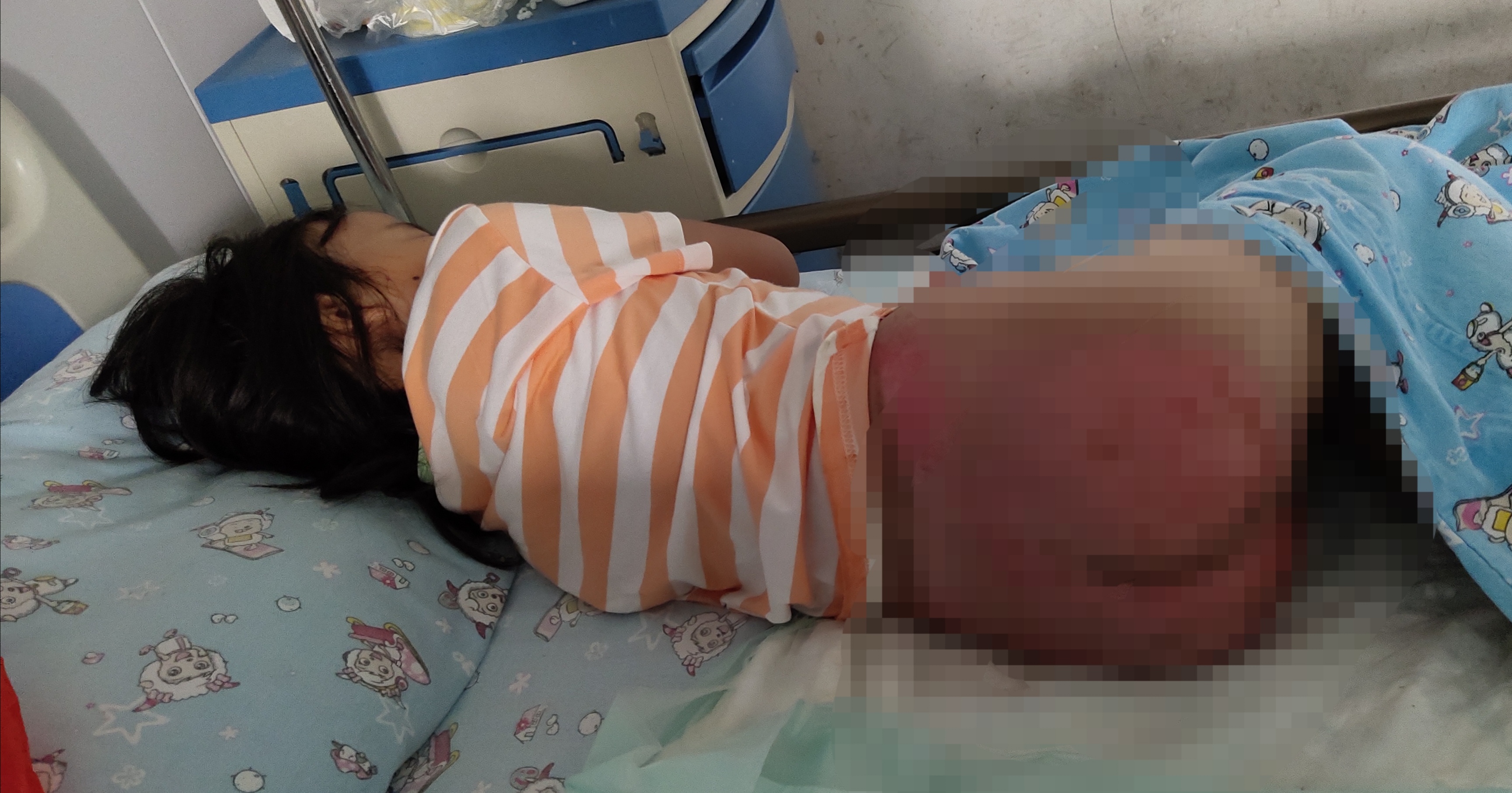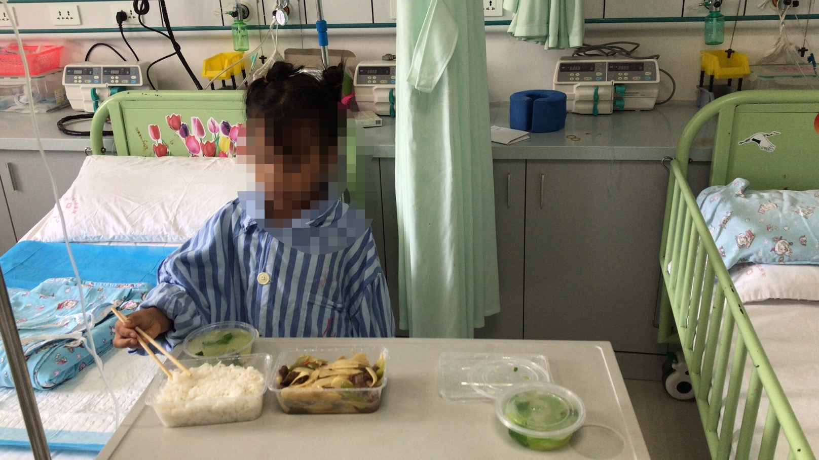 秀秀的臀部皮肤被农药灼伤,只能站着吃饭