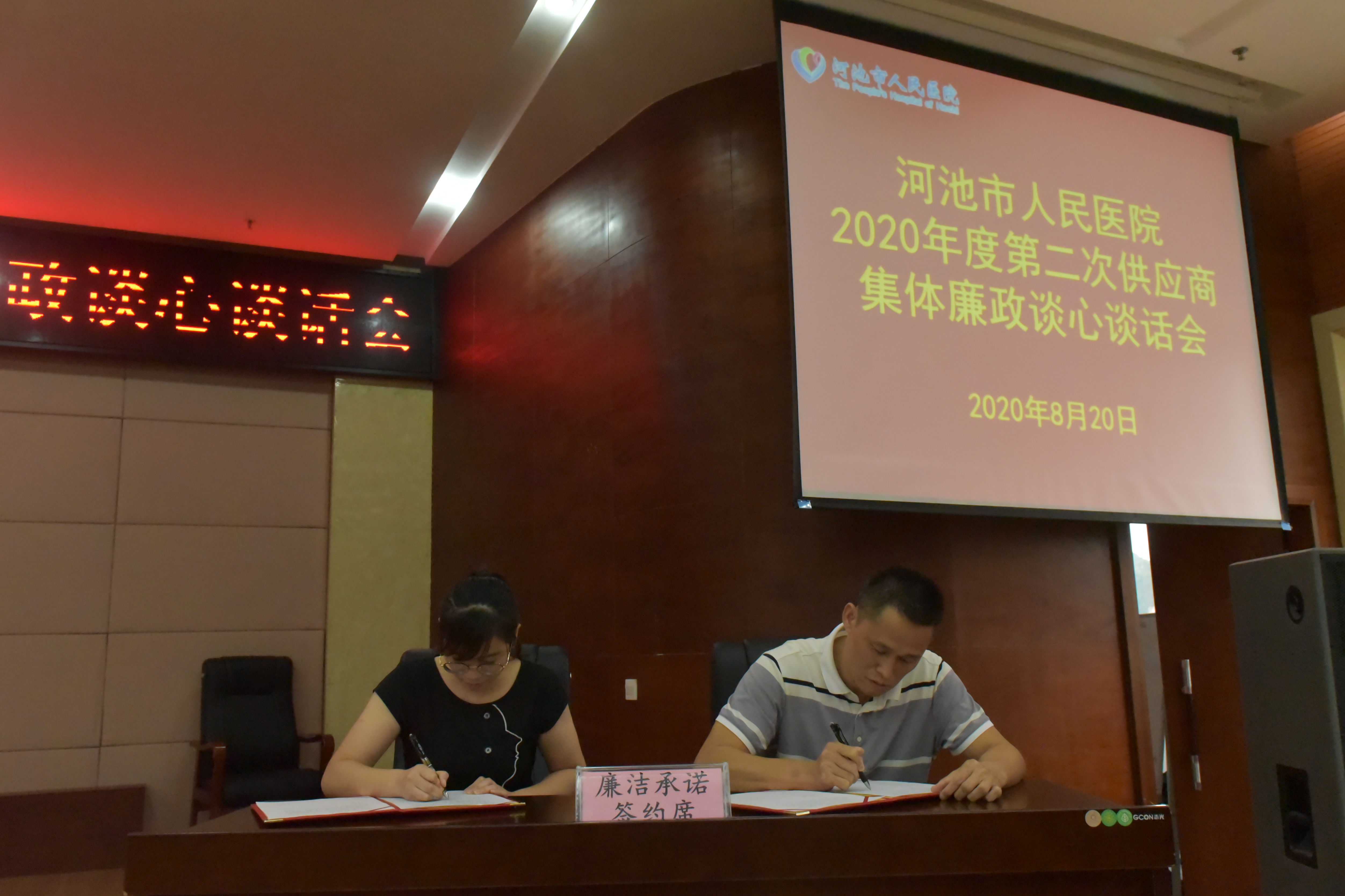 会上,全体与会人员共同观看《国家监察》警示教育专题片。4家供应商代表与医院签订了廉政承诺书,并表示将全力支持和配合医院,严格按照有关规定,自觉接受院方相关部门监督检查,共同营造廉洁公平的购销环境。