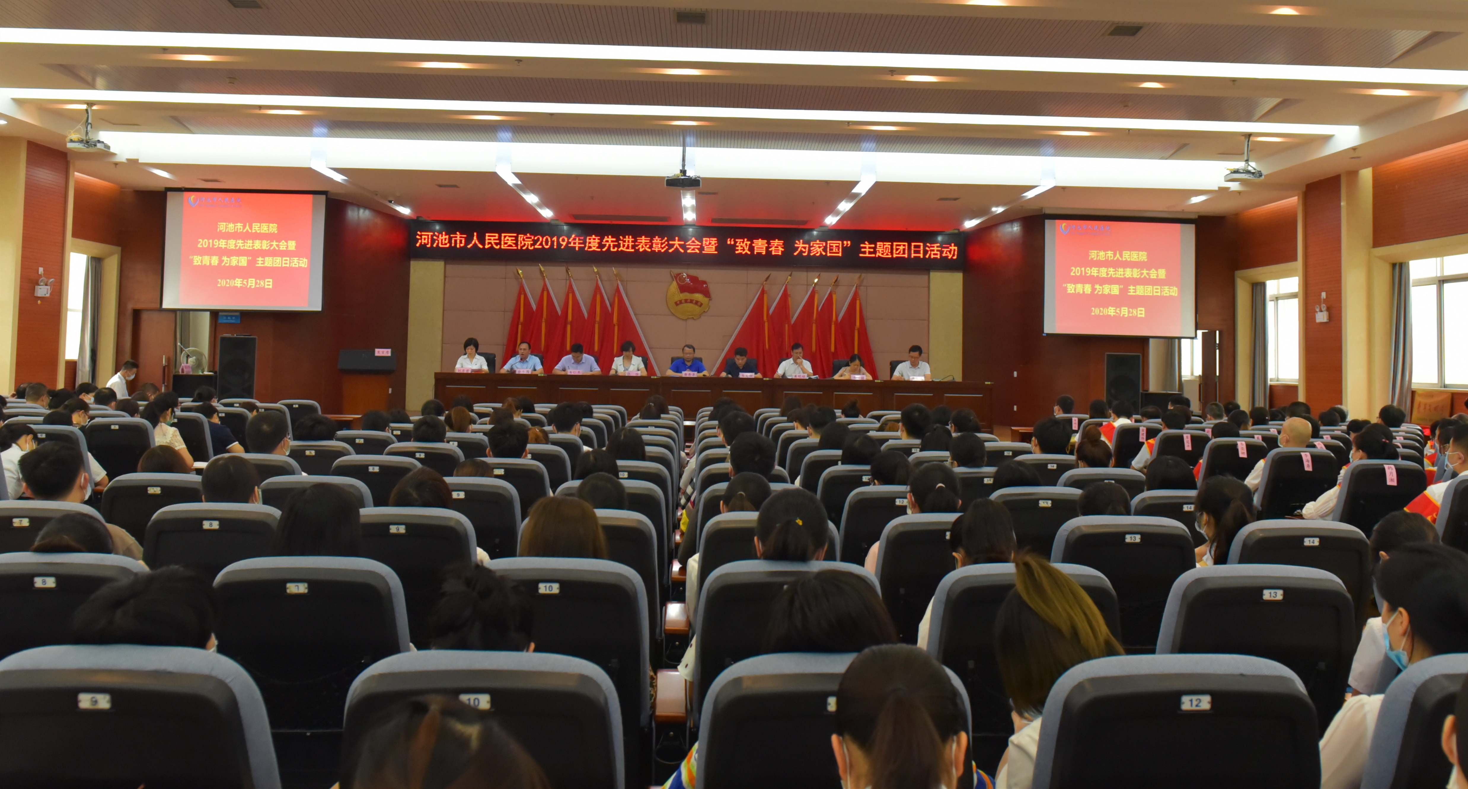 2020年5月29日下午,我院在门诊综合大楼23楼多功能厅召开2019年度先进表彰大会暨“致青春 为家国”主题团日活动,着力激励医院青年团员争做有理想、有本领、有担当的黄文秀式好青年,为推进全市卫生健康事业建设发展贡献青春力量。医院领导班子出席会议。
