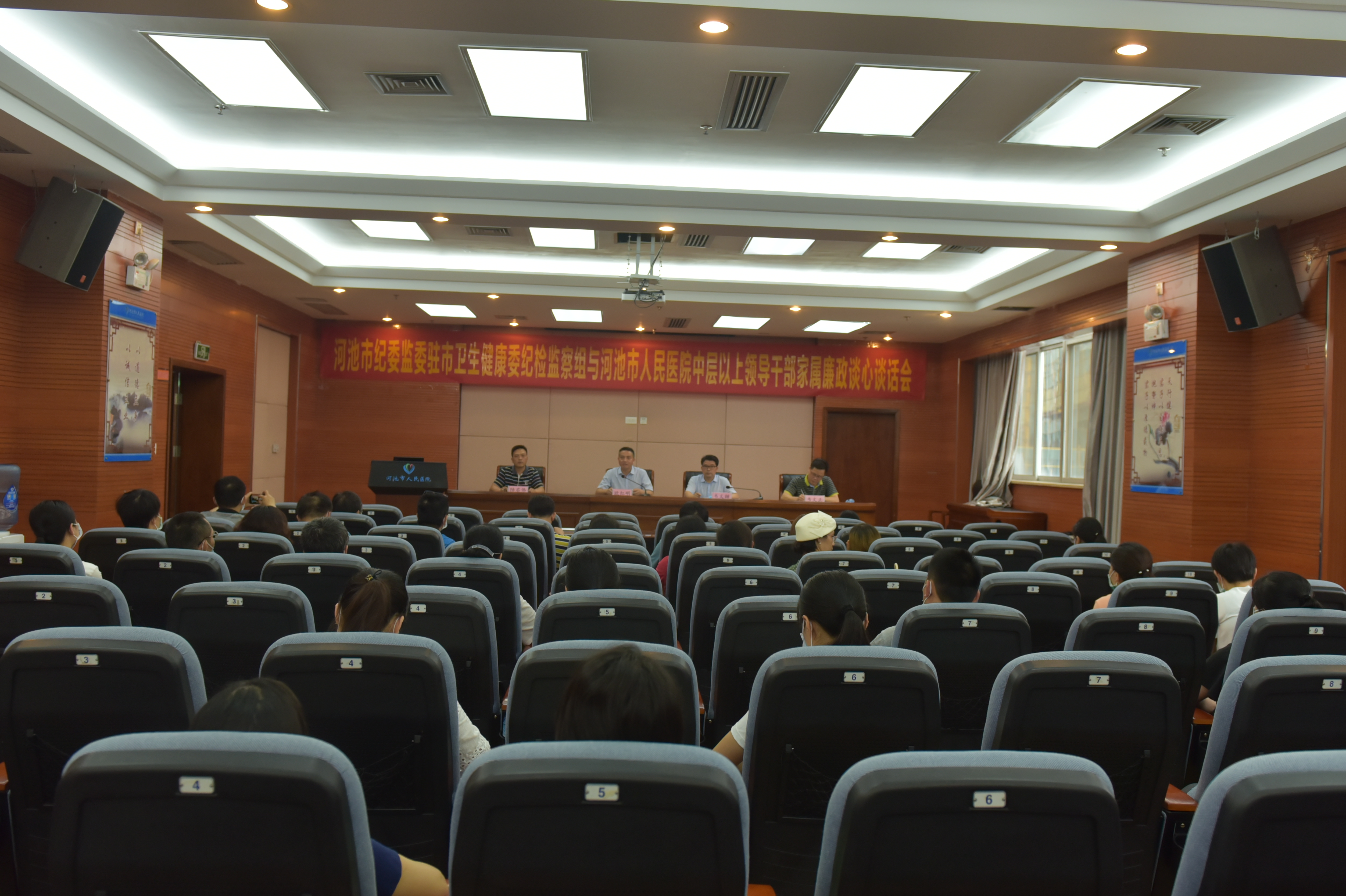 近日,我院召开领导干部家属廉政谈心谈话会议,河池市纪监委派驻市卫生健康委纪检组组长欧红明对医院领导班子成员、重点部门负责人和重点岗位职工的家属共50余人进行了廉政谈心谈话。