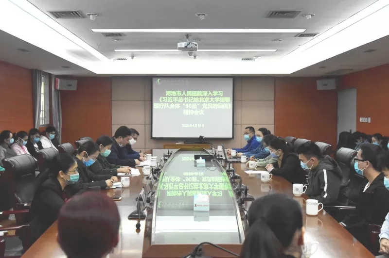 近日,我院在22楼会议室召开专题学习会议,深入学习习近平总书记给北京大学援鄂医疗队全体90后党员的回信。市卫生健康委副主任欧乃坚,市人民医院副院长韦仁杰、韦喆以及相关科室负责人和全院内科、全科住培学员40余名团员青年参加会议。