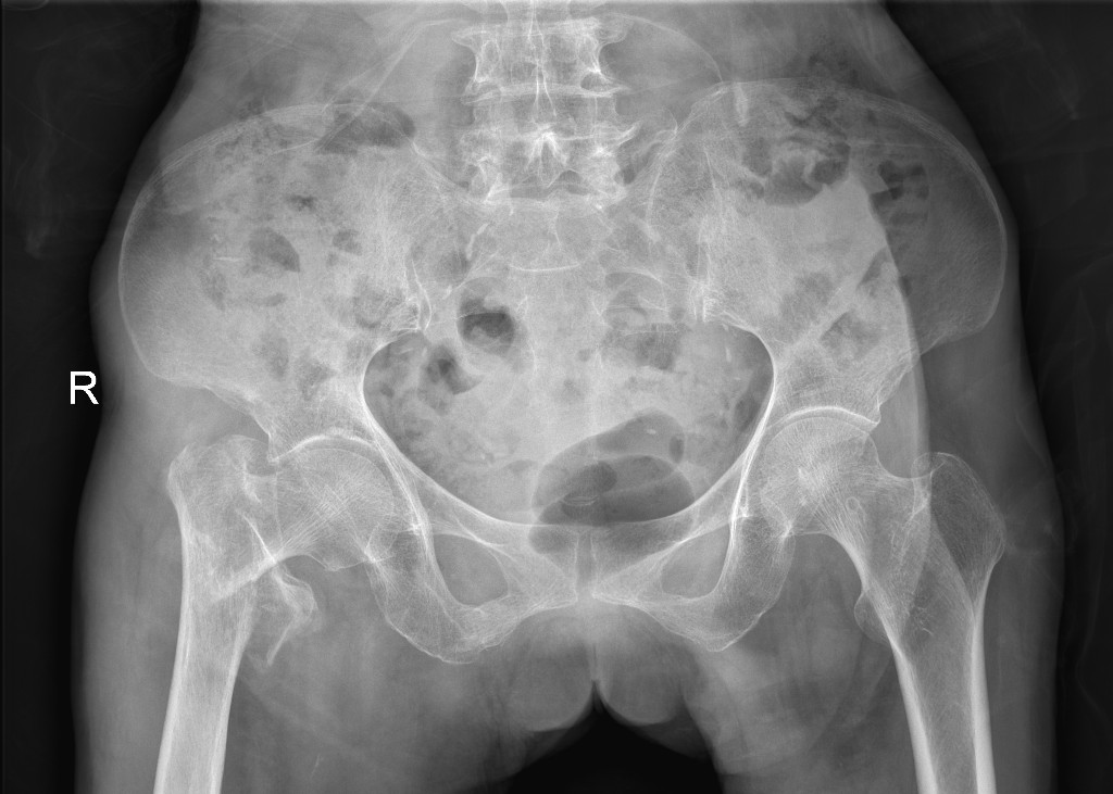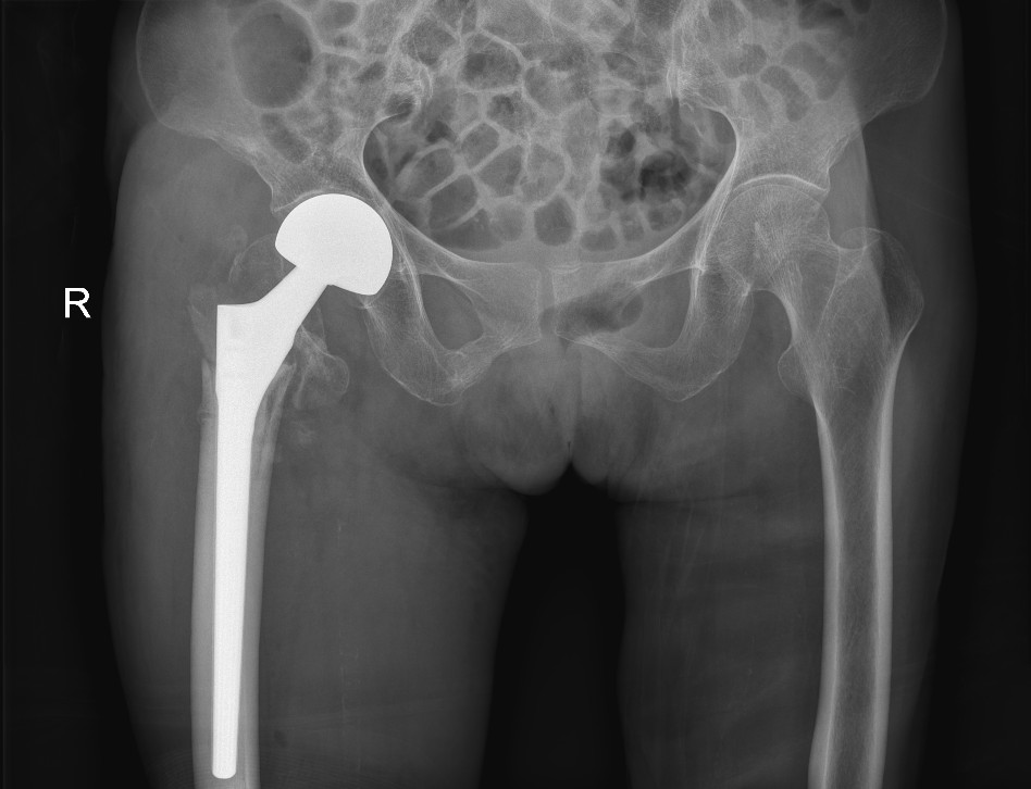 来自巴马县的林阿婆今年已有83岁高龄。林阿婆一个月前在家中不慎跌倒,出现右髋部疼痛,不能站立行走。这突如其来的情况令家人焦急万分,于是急忙将老人送到我院急诊科就诊,值班医师立刻为其进行检查。X光片显示:右股骨转子间骨折。因病情严重,医护人员马上将其送入脊柱关节骨病外科进行治疗。