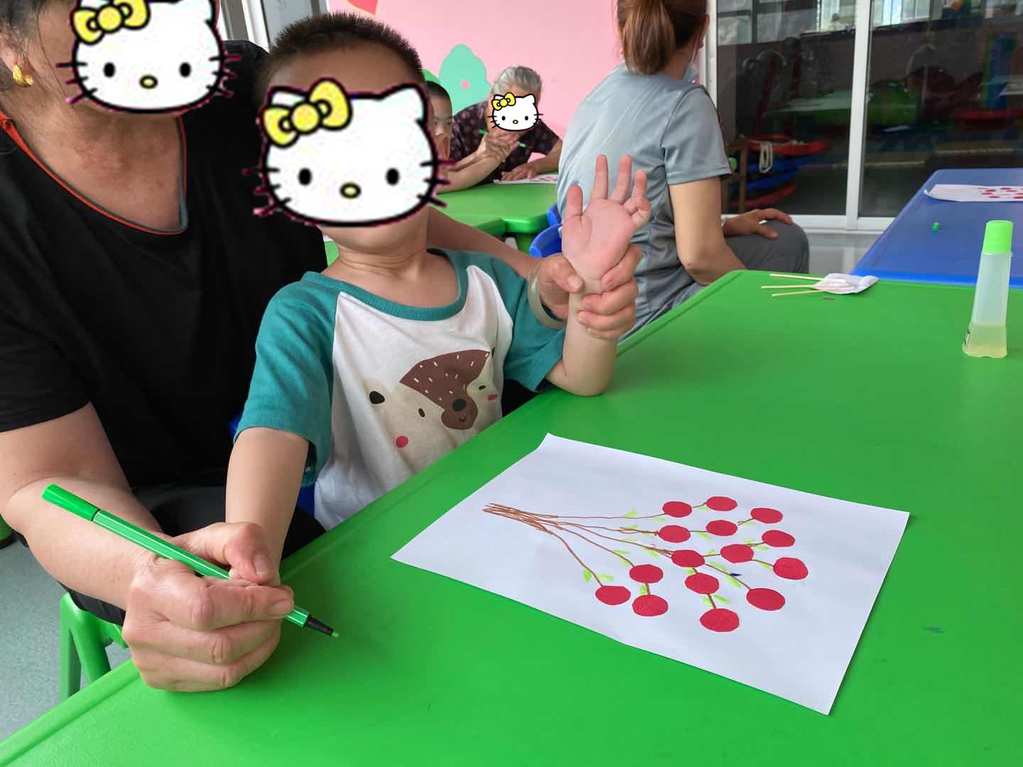 集体课上,儿童康复科的治疗师组织孩子们制作美丽的“鲜花”绘画,通过制作礼物,亲手送上小心意来表达对妈妈们的爱。由于孩子们能力有限,治疗师们邀请家长加入到孩子们当中,和孩子们一起完成这个温馨的“任务”。通过手工绘画,不仅可以有效的锻炼孩子们的精细动作、双手协调运动能力 ,同时促进了孩子们的创造力、想象力的发展。