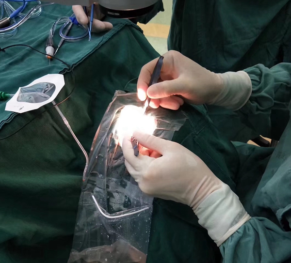 2月13日9:40,吴先生被送入手术室,在局麻下进行左眼玻璃体切除,眼内异物取出,非正常晶体白内障摘除,人工晶体植入,前房成形术。显微镜下翟建伟主任熟练的进行着每一步操作,精细的分离历时一小时十五分,终于顺利将异物取出,手术后患者安全返回病房。