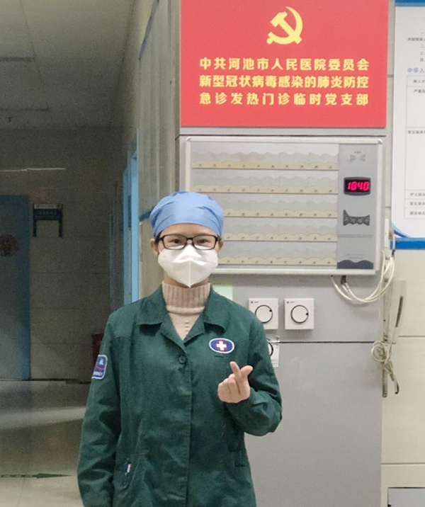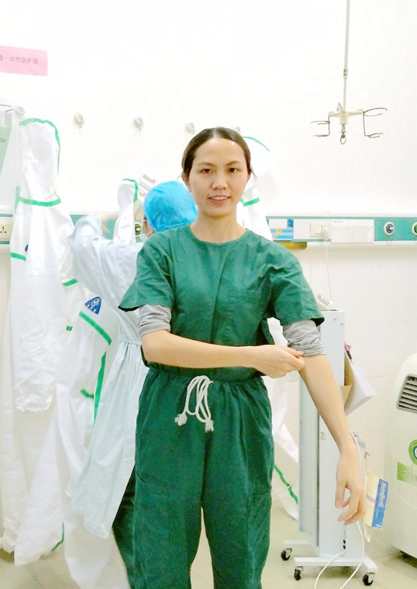 黎思源护士——号手,支援河池市人民医院传染科隔离病区